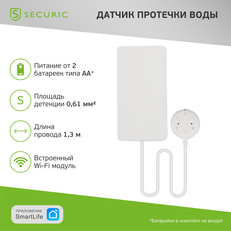 Wi-Fi датчик утечки воды SECURIC, SEC-S-101W интересное: