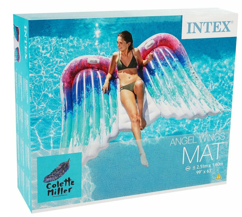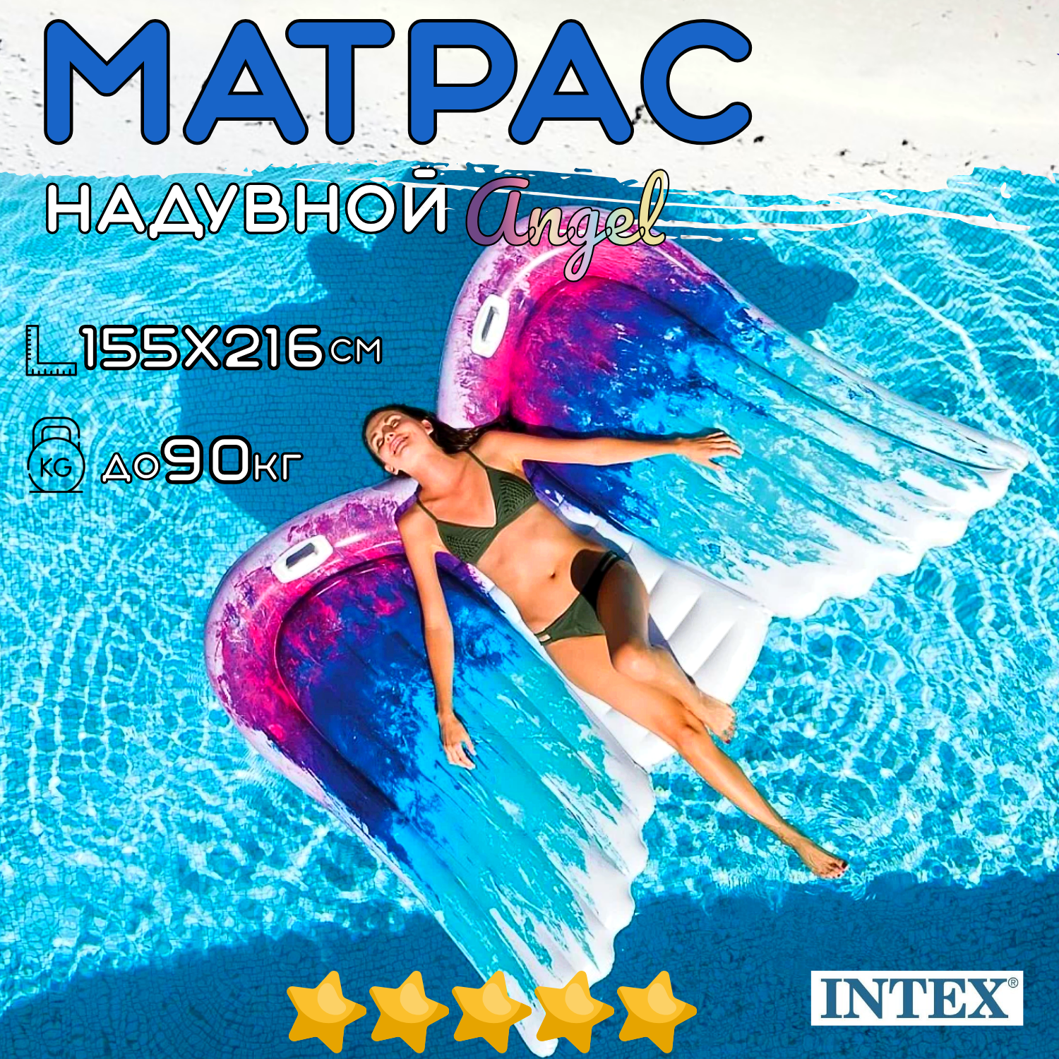 Купить Матрас надувной пляжный INTEX Крылья 155х216 см с ручками, одноместный, нагрузка до 90 кг, для взрослых и детей от 9 лет, без насоса, цвет яркий / 1 шт.