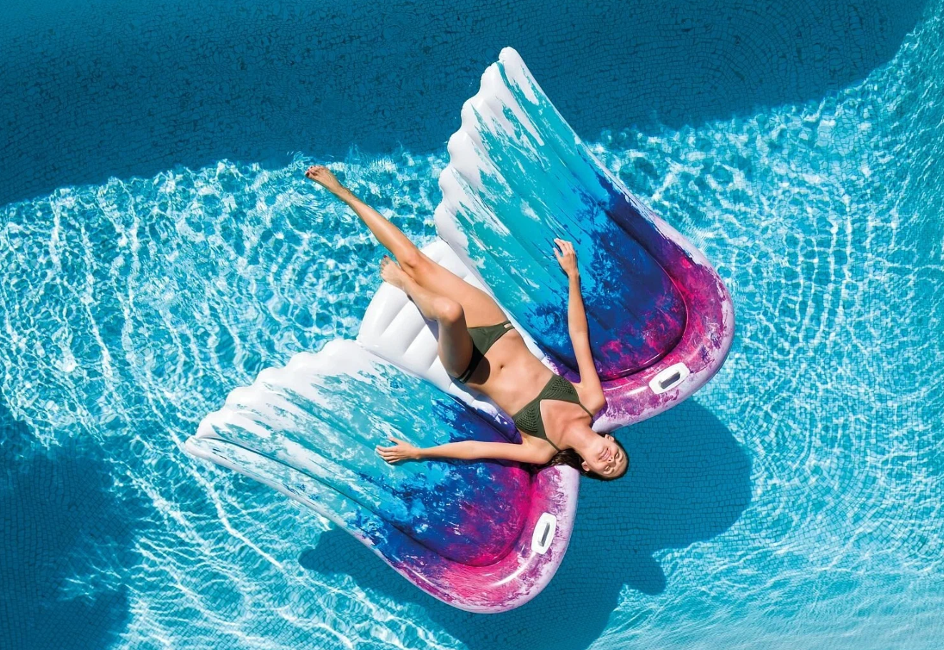 СохранитьМатрас надувной пляжный INTEX Крылья 155х216 см с ручками, одноместный, нагрузка до 90 кг, для взрослых и детей от 9 лет, без насоса, цвет яркий / 1 шт. интересное: