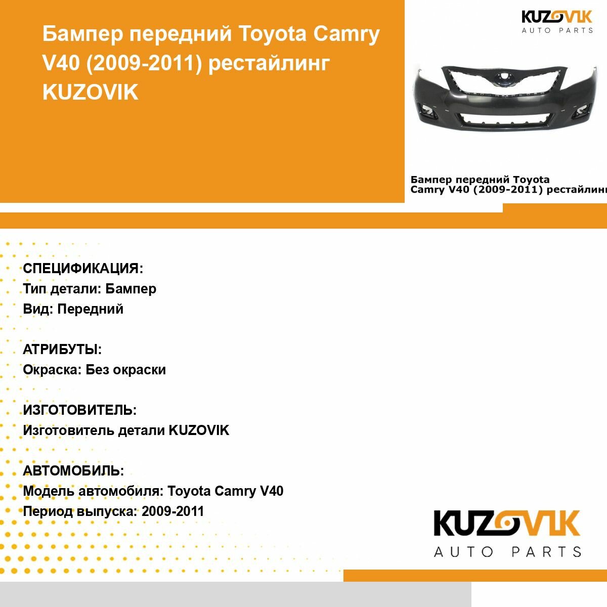 Бампер передний Toyota Camry Тойота Камри V40 (2009-2011) рестайлинг интересное: