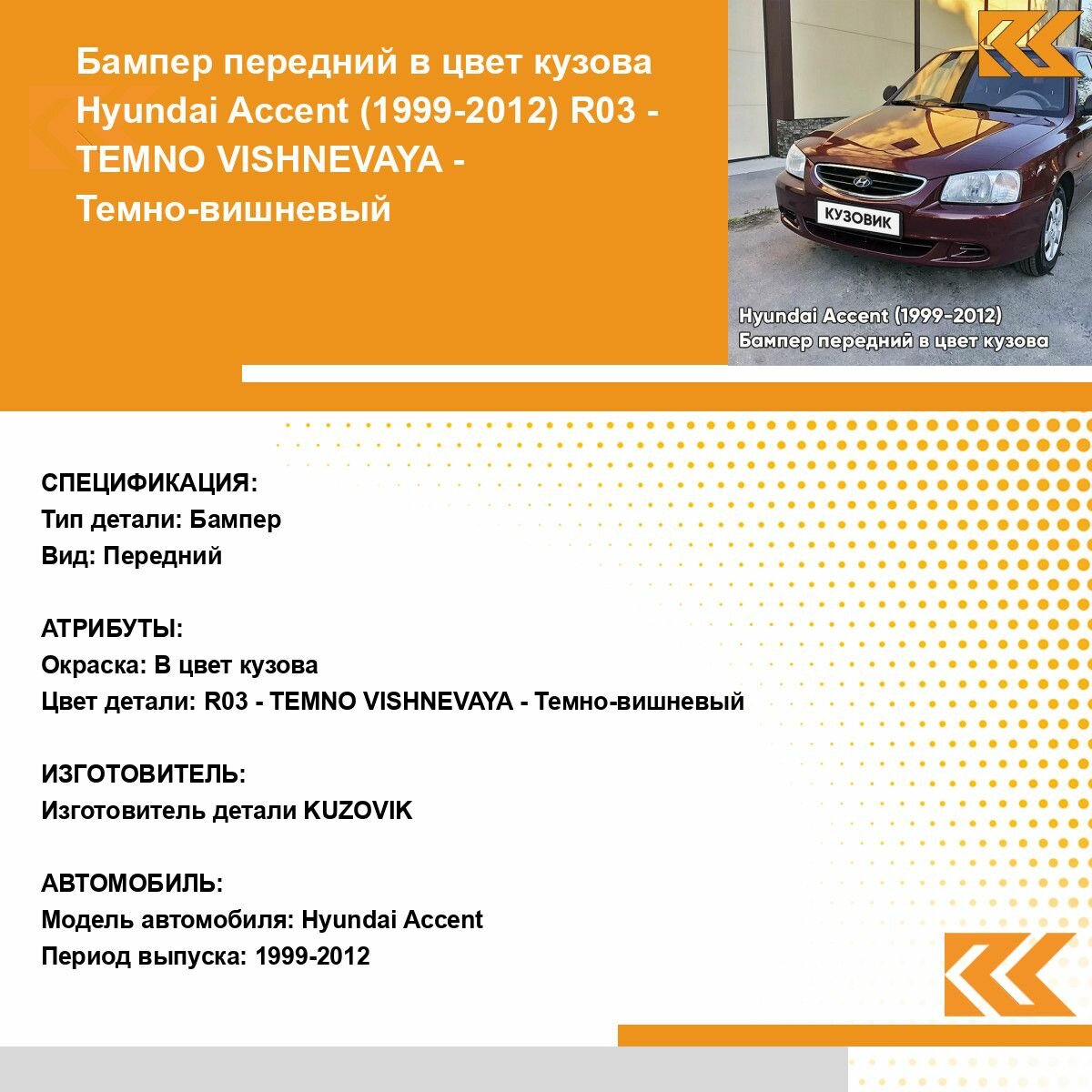 СохранитьБампер передний в цвет кузова Hyundai Accent Хендай Акцент R03 - TEMNO VISHNEVAYA - Темно-вишневый интересное: