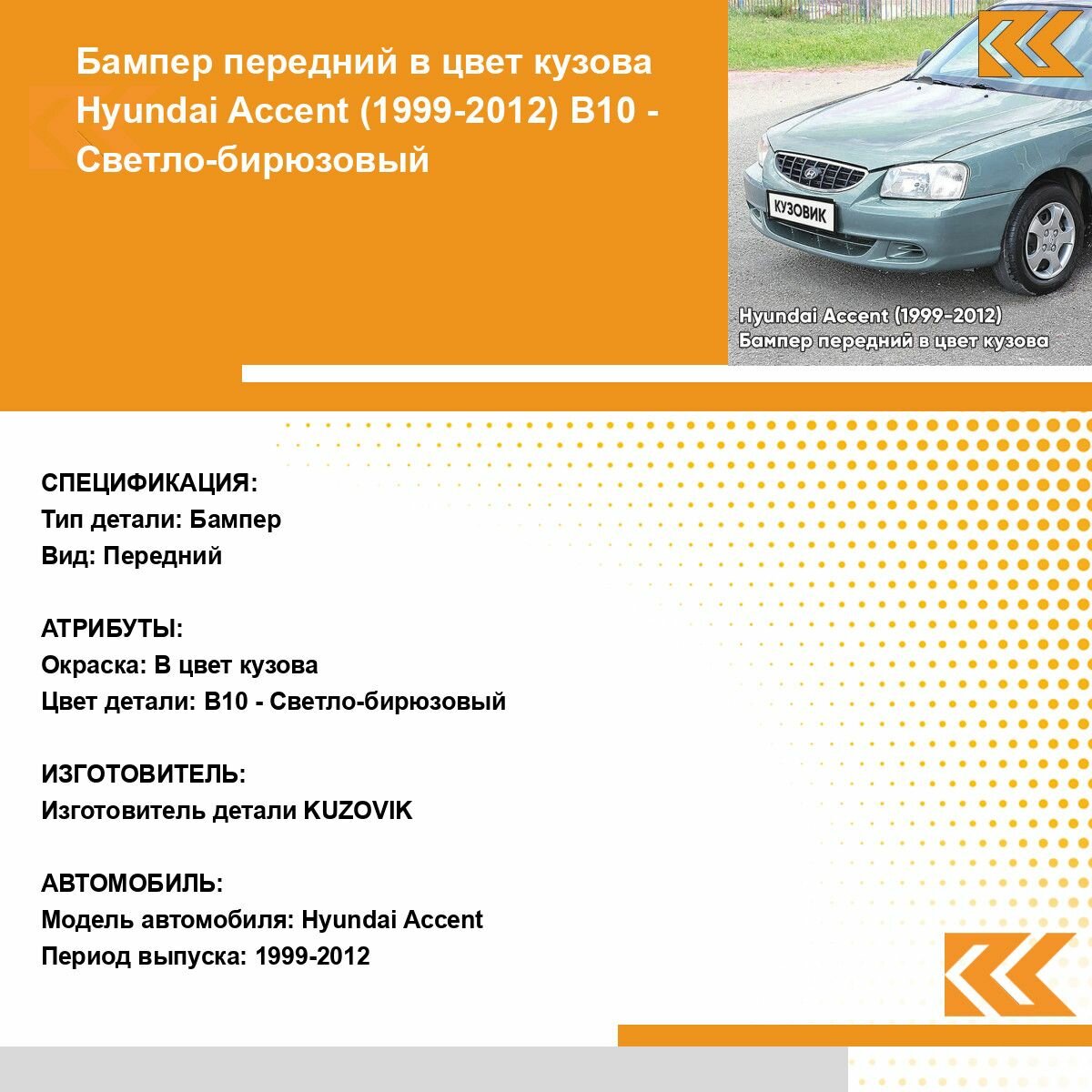 СохранитьБампер передний в цвет кузова Hyundai Accent Хендай Акцент B10 - Светло-бирюзовый интересное: