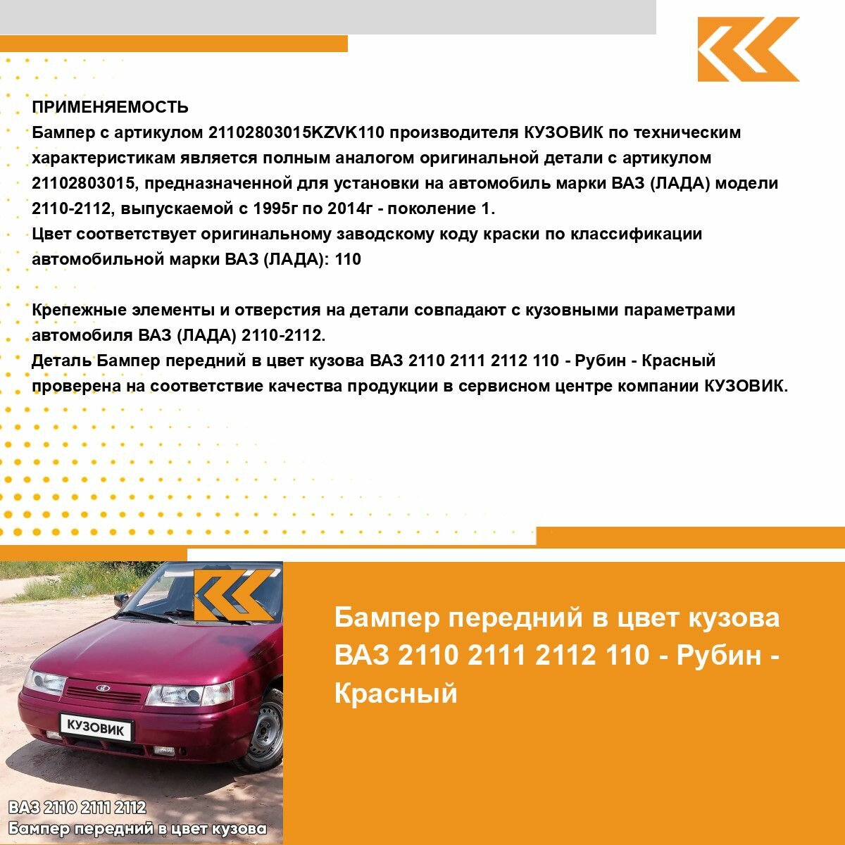 СохранитьБампер передний в цвет кузова ВАЗ 2110 2111 2112 110 - Рубин - Красный интересное: