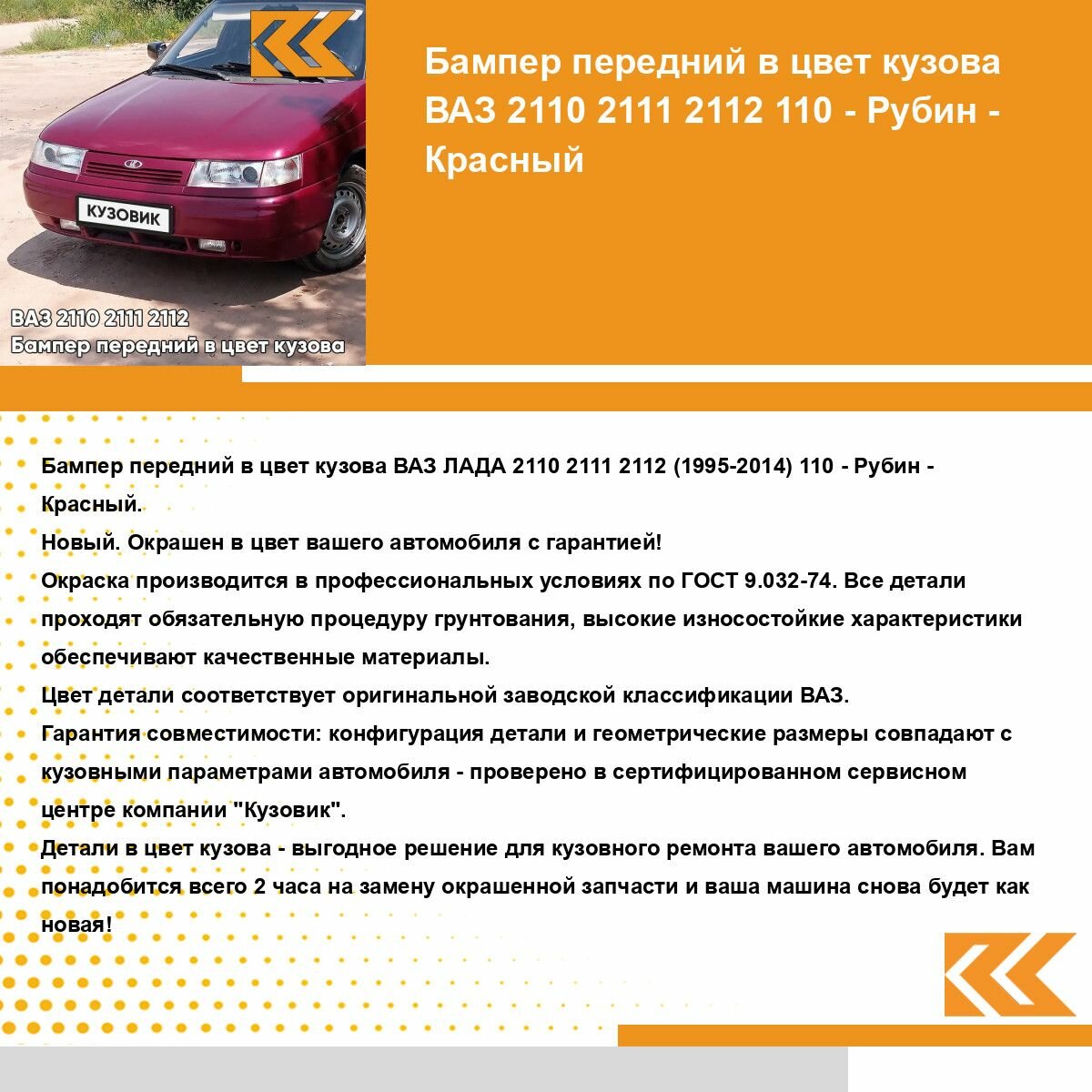 Ниже Вы можете прочитать отзывы на Бампер передний в цвет кузова ВАЗ 2110 2111 2112 110 - Рубин - Красный, ознакомится с подробными характеристиками, посмотреть интересные обзоры и фотографии на Бампер передний в цвет кузова ВАЗ 2110 2111 2112 110 - Рубин - Красный.