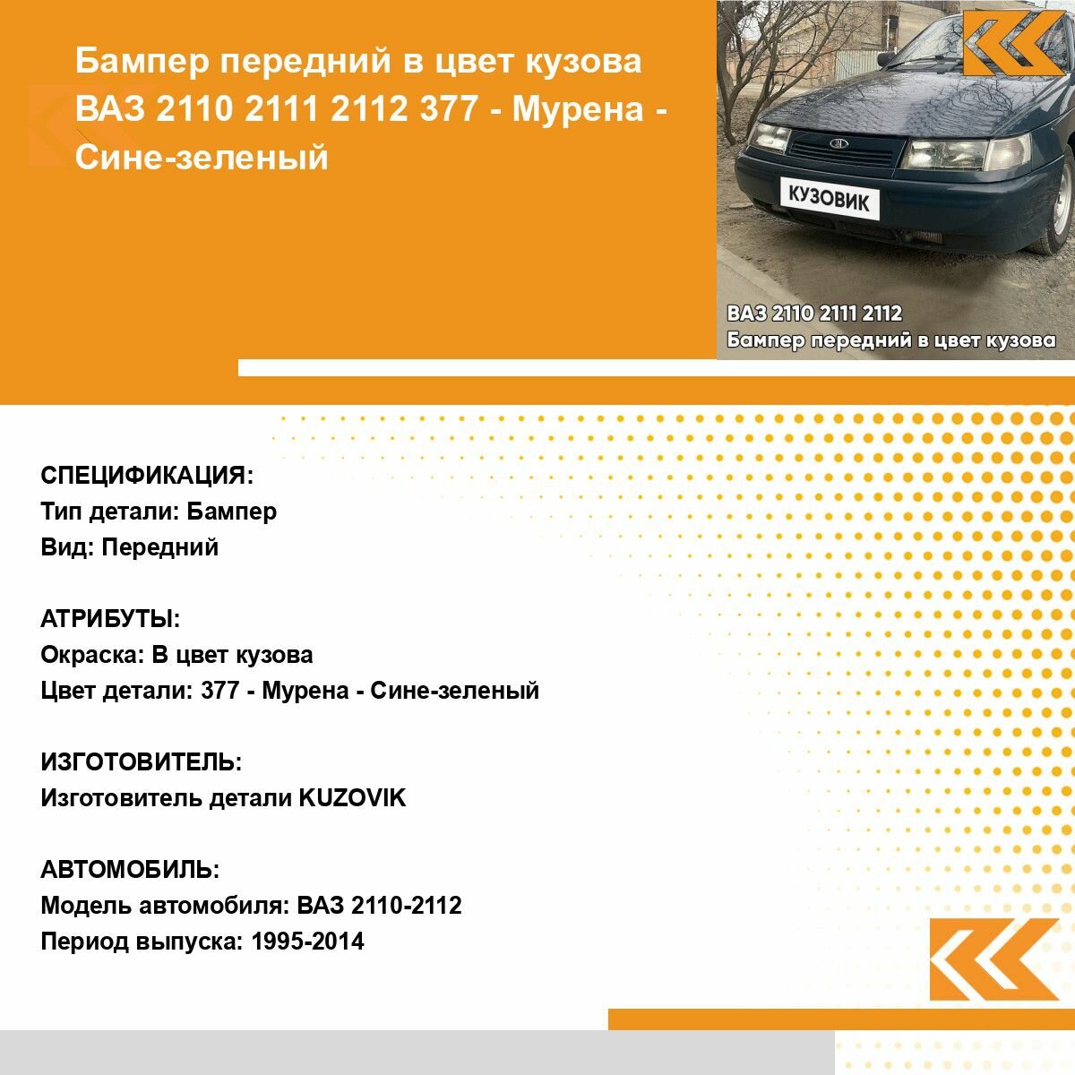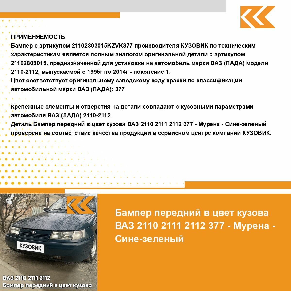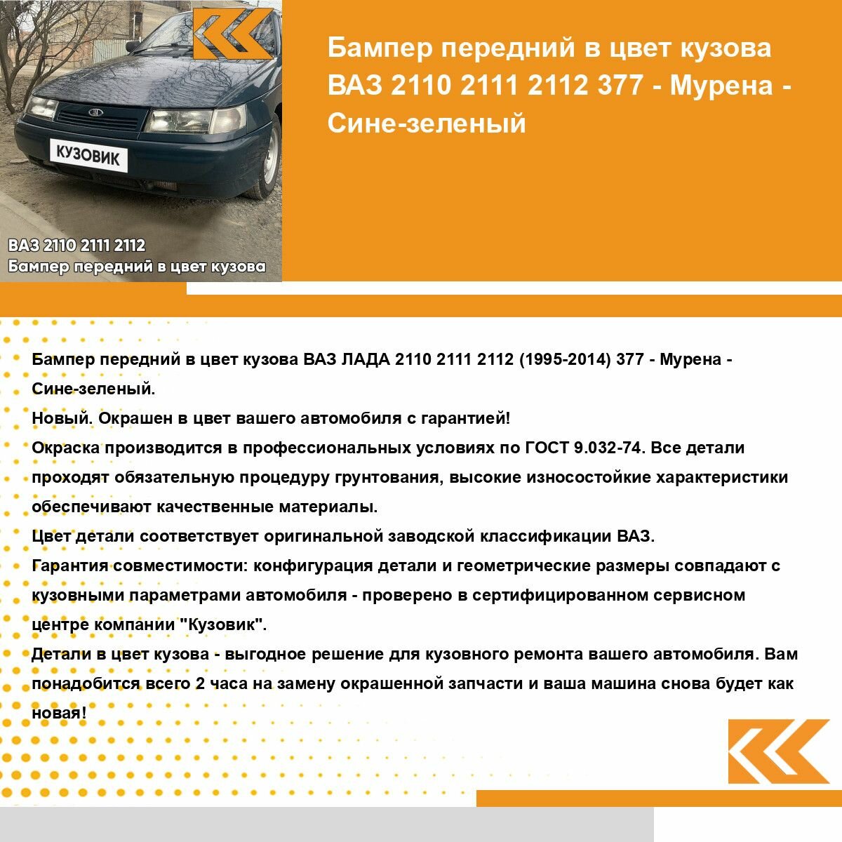 СохранитьБампер передний в цвет кузова ВАЗ 2110 2111 2112 377 - Мурена - Сине-зеленый интересное: