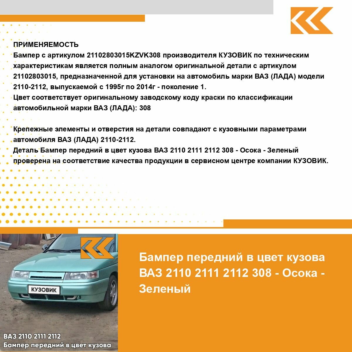 СохранитьБампер передний в цвет кузова ВАЗ 2110 2111 2112 308 - Осока - Зеленый интересное: