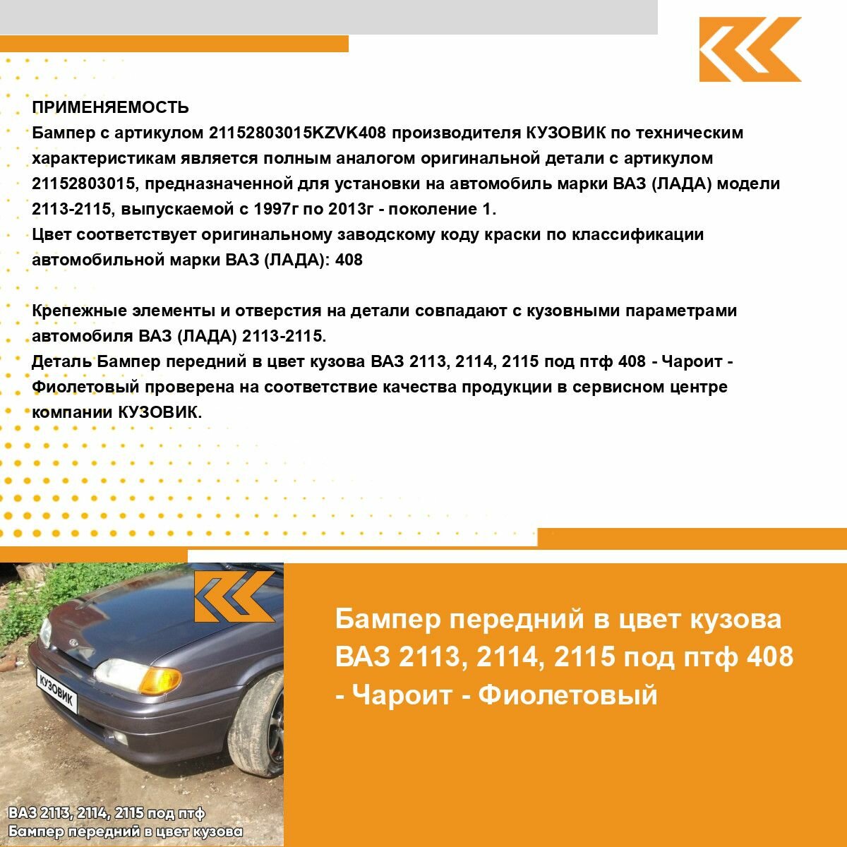 Ниже Вы можете прочитать отзывы на Бампер передний в цвет кузова ВАЗ 2114 2115 2113 под птф 408 - Чароит - Фиолетовый, ознакомится с подробными характеристиками, посмотреть интересные обзоры и фотографии на Бампер передний в цвет кузова ВАЗ 2114 2115 2113 под птф 408 - Чароит - Фиолетовый.