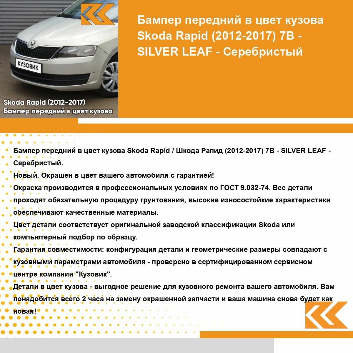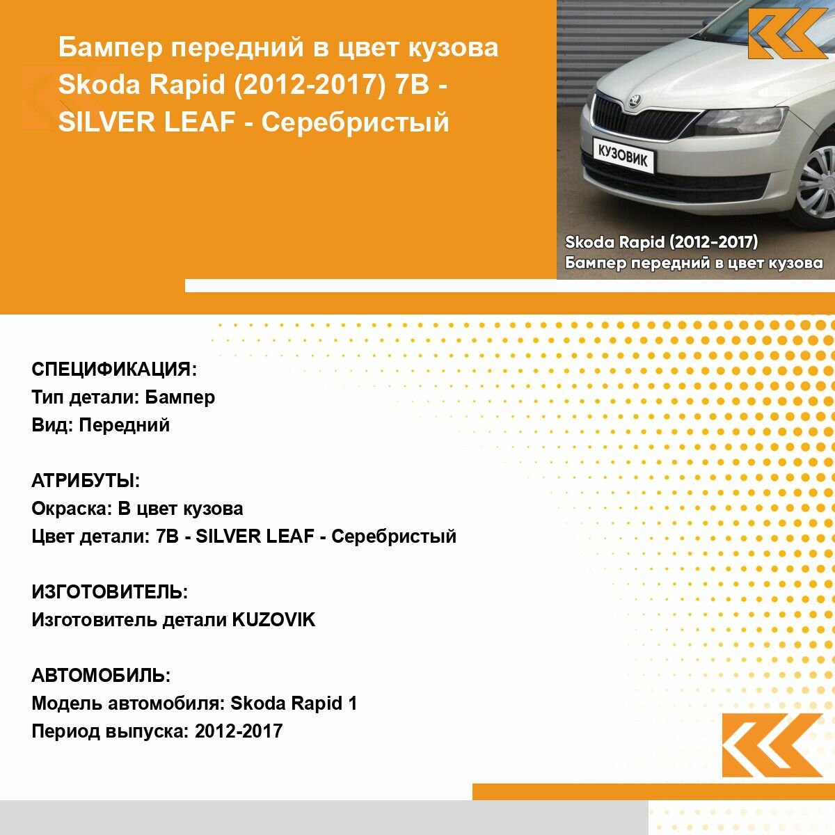 Бампер передний в цвет кузова Skoda Rapid 1 Шкода Рапид (2012-2017) 7B - SILVER LEAF - Серебристый интересное: