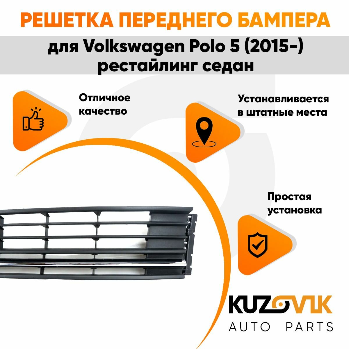 Решетка переднего бампера для Фольксваген Поло Volkswagen Polo 5 (2015-) рестайлинг седан с хромом интересное: