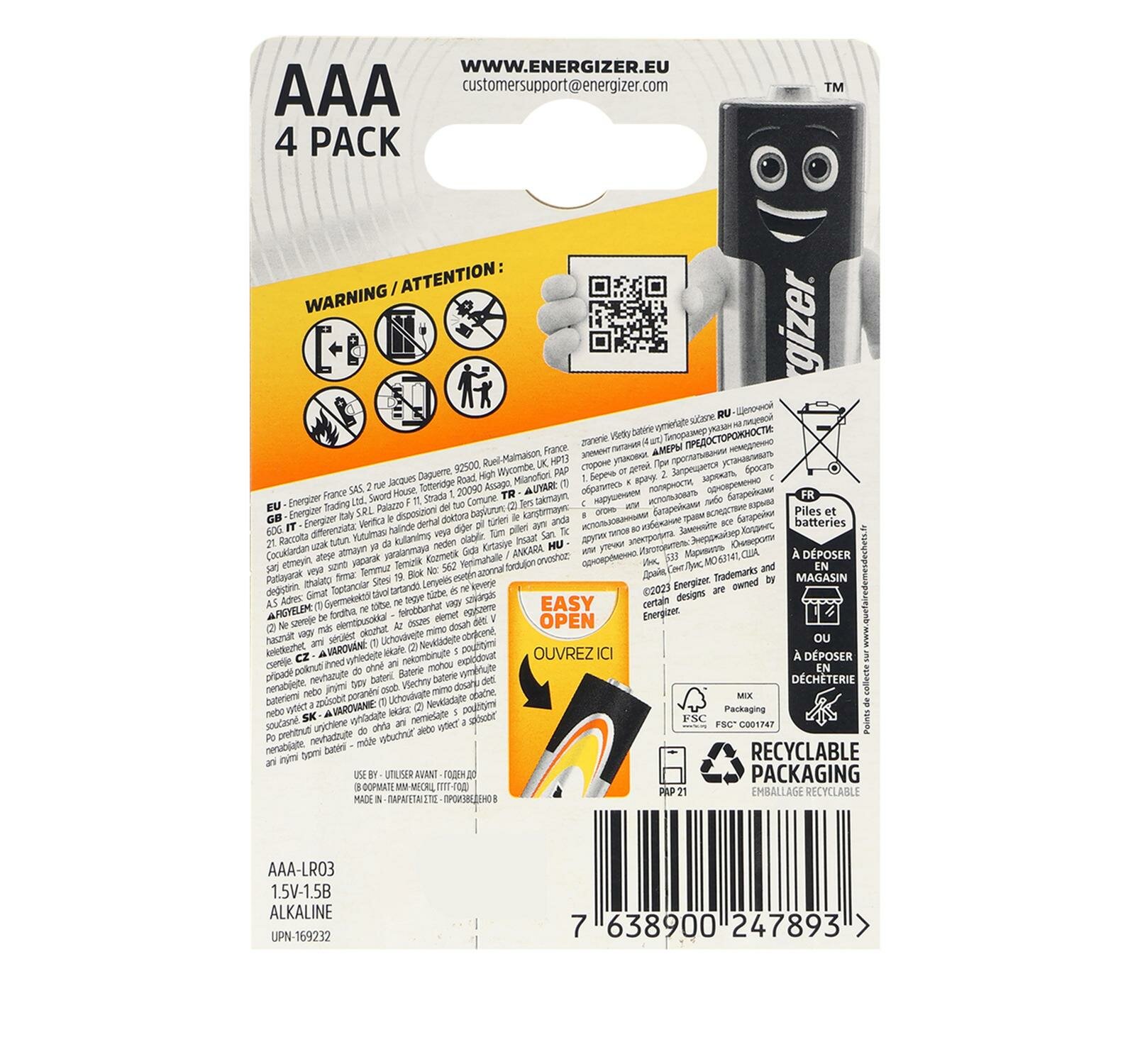 Ниже Вы можете прочитать отзывы на Батарейка Energizer Alkaline Power AAA, 4 шт., ознакомится с подробными характеристиками, посмотреть интересные обзоры и фотографии на Батарейка Energizer Alkaline Power AAA, 4 шт..