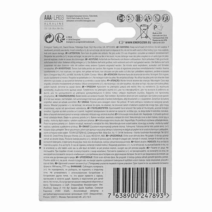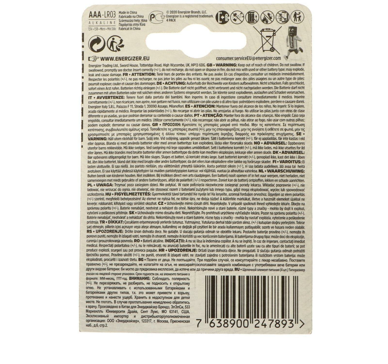 Элемент питания Energizer AAA Alkaline Power (4шт) .