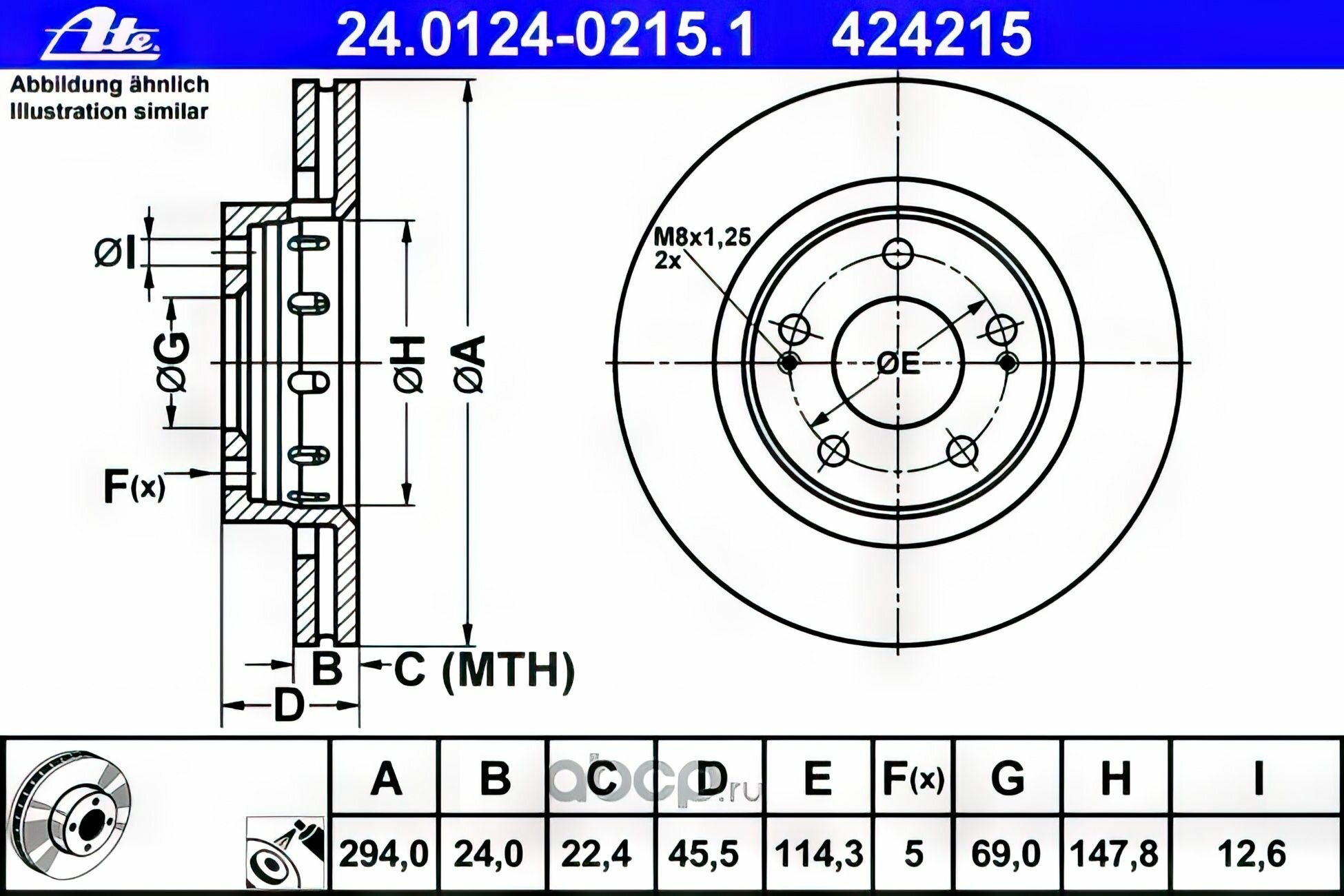Диск тормозной 24.0124-0215.1 ate 1шт