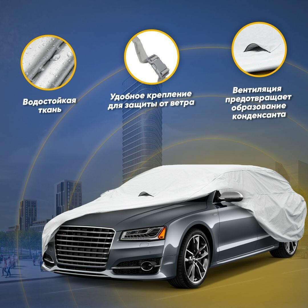 Чехол на автомобиль зимний от снега, дождя, тент на машину автомобильный для защиты краски, кузова универсальный, модель 13 "L"