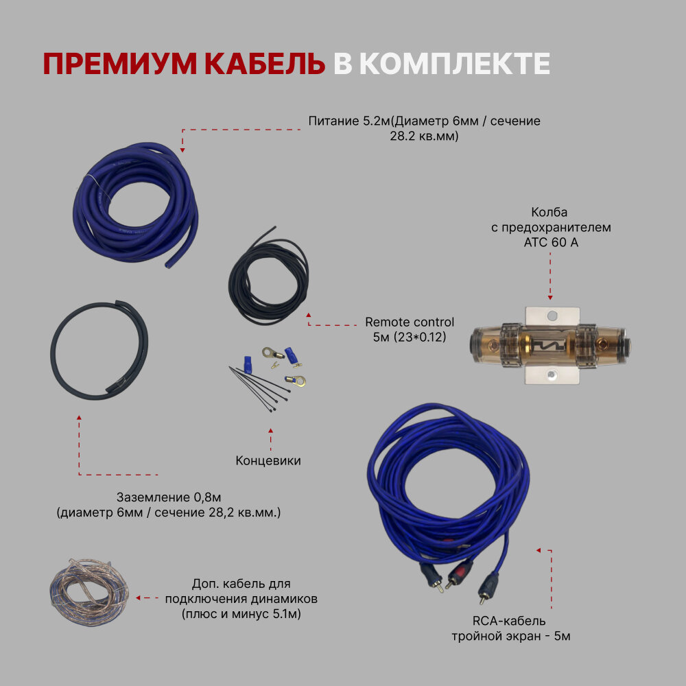 Купить Сабвуфер активный автомобильный 8" усилитель звука и премиум провода
