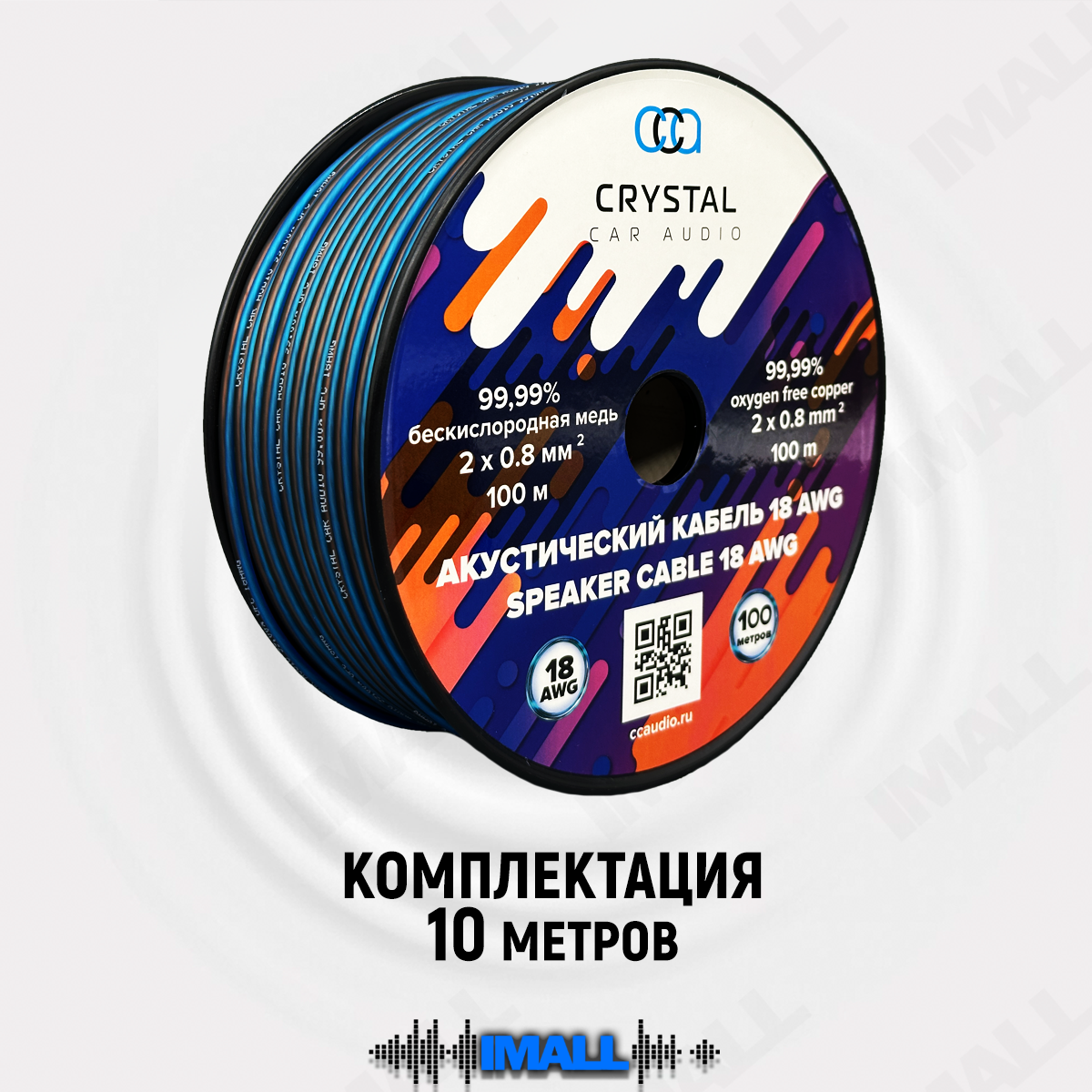 Купить Кабель акустический, провода для автозвука, динамиков, колонок в машину, Crystal Car Audio, 10 метров, 18 AWG