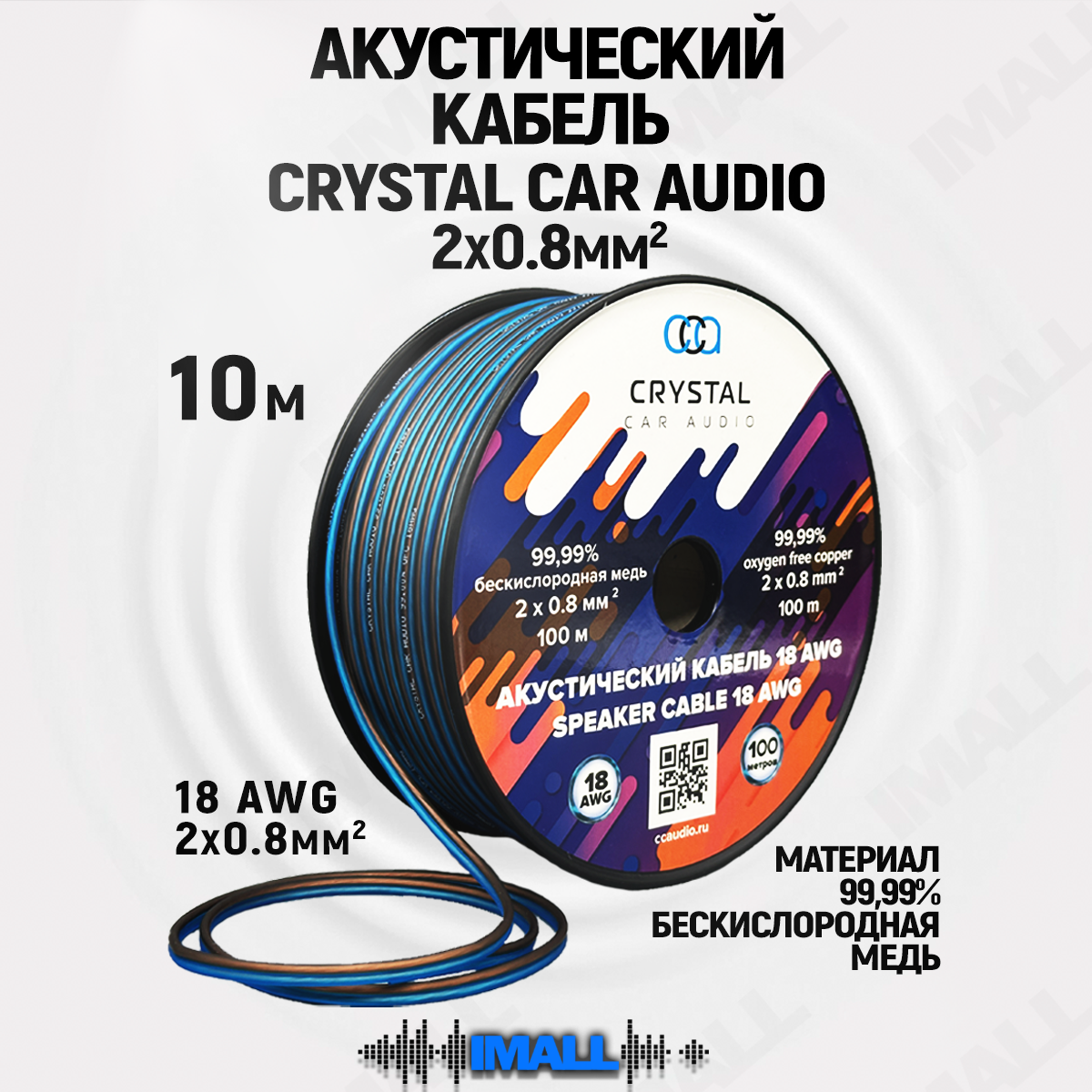 Кабель акустический, провода для автозвука, динамиков, колонок в машину, Crystal Car Audio, 10 метров, 18 AWG интересное: