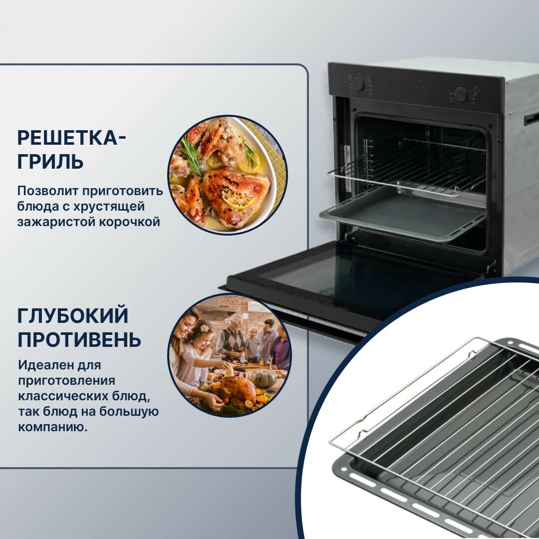 | Подробная комплектация | глубокий противень с антипригарным покрытием, хромированная решётка |