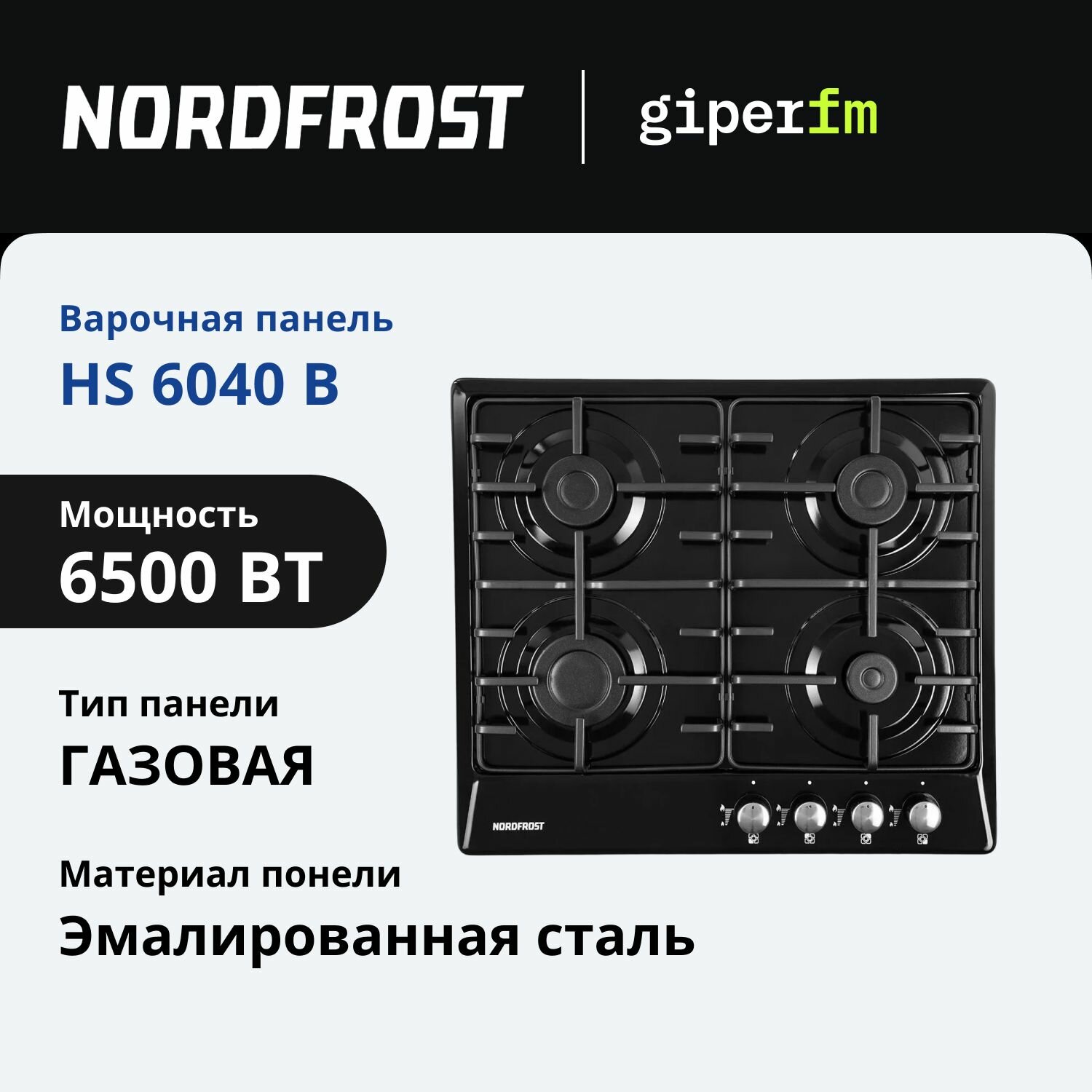 Варочная панель газовая NORDFROST HM 6042 B, черный