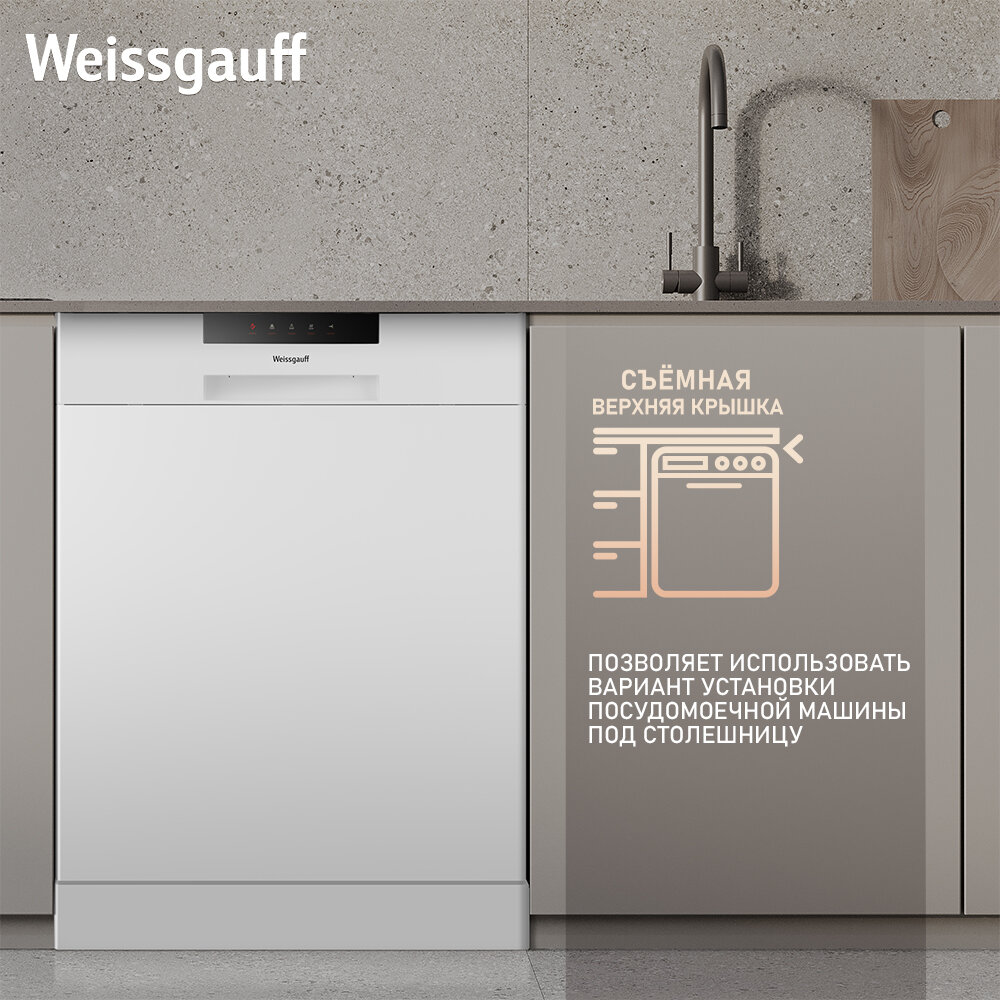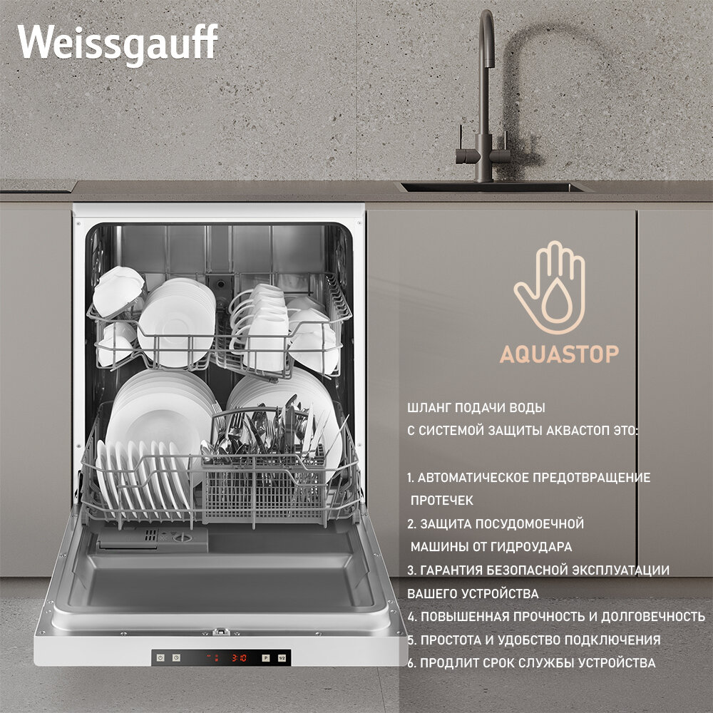 Посудомоечная машина Weissgauff DW 6025 (модификация 2024 года),3 года гарантии, 12 комплектов, 6 программ, полная защита от протечек AquaStop, половинная загрузка, дозагрузка посуды, таймер отсрочки запуска, А++ интересное:
