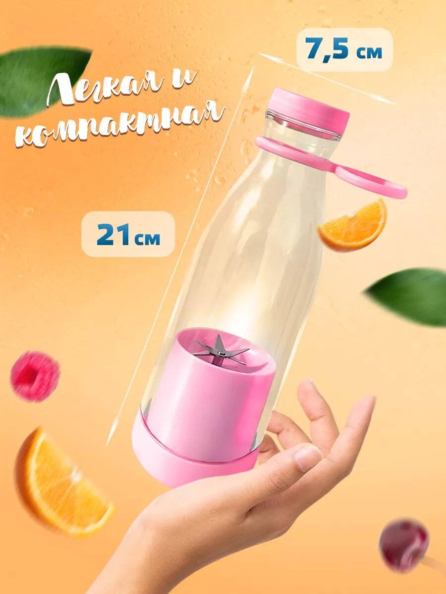 Портативный блендер для смузи и коктейлей беспроводной Classmark на аккумуляторе, мини измельчитель электрический, розовый