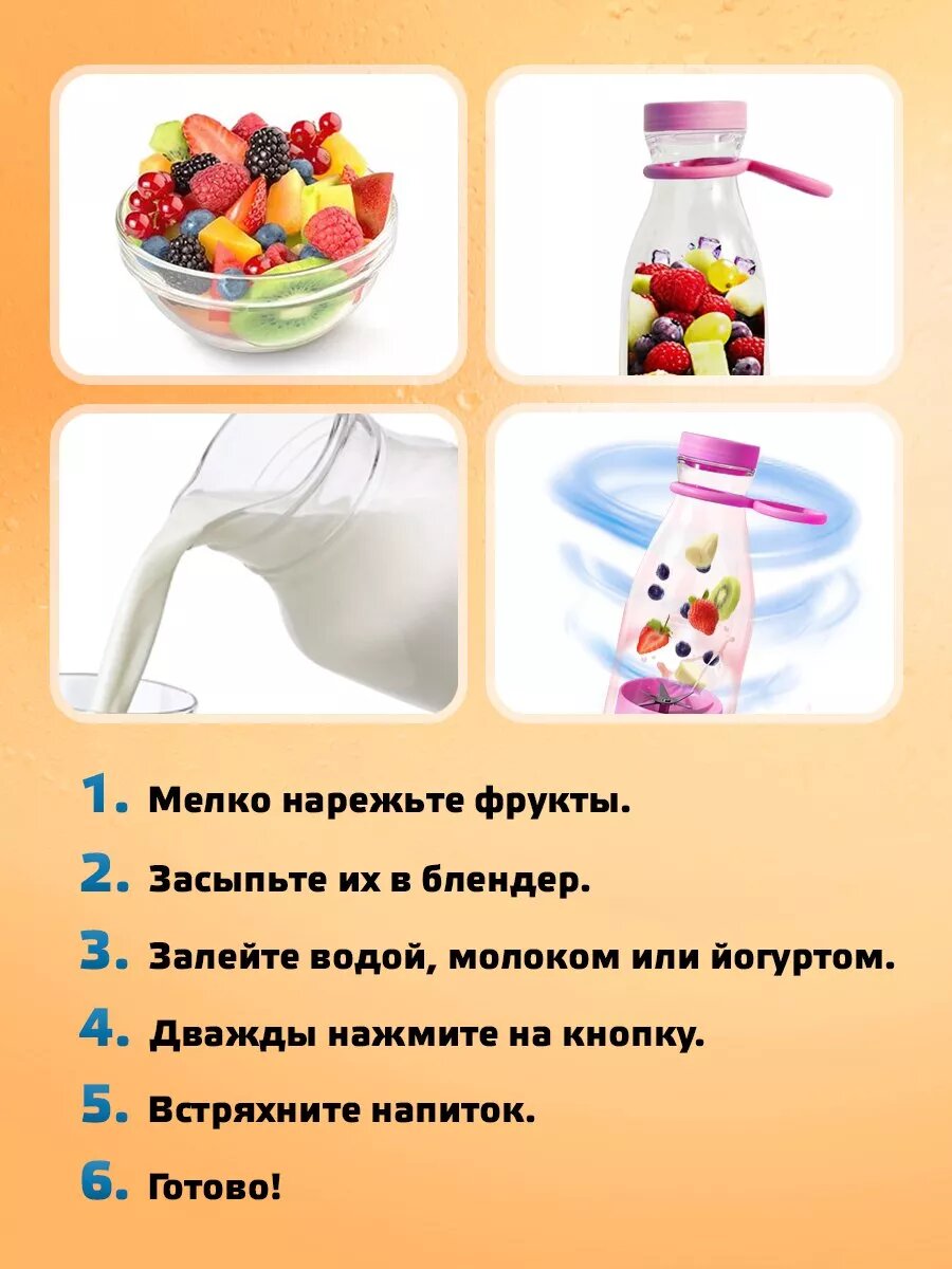Беспроводной блендер портативный мини для смузи и коктейлей интересное: