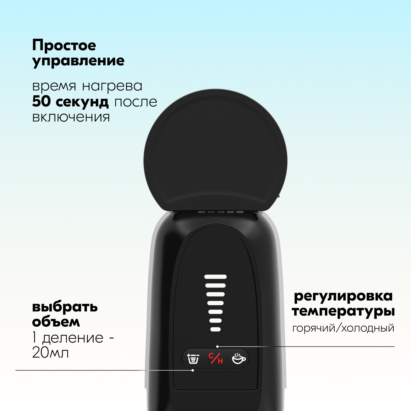 | Настройки | объем порции горячей воды / температура кофе |