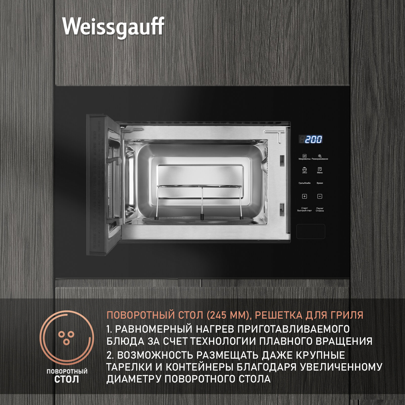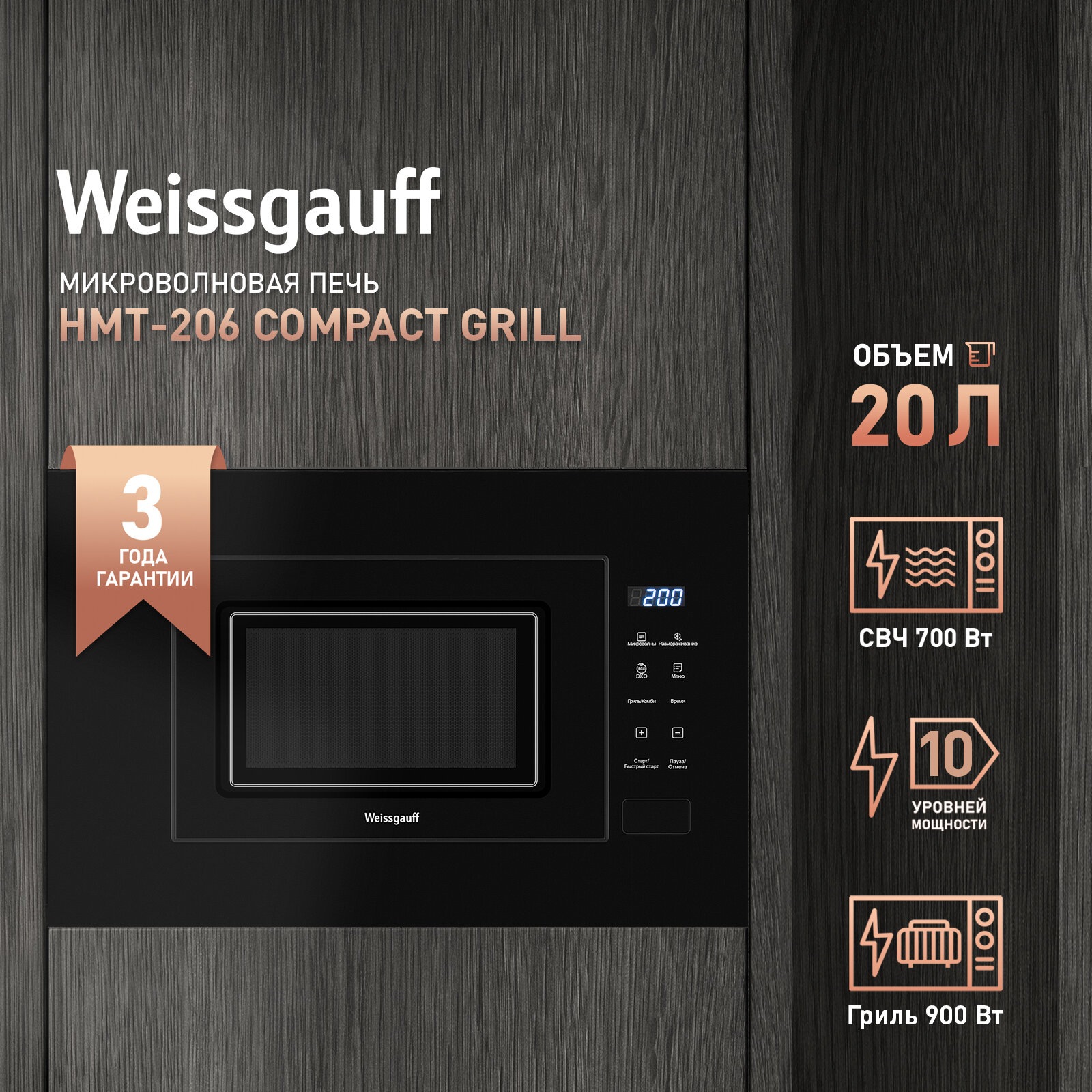 Купить Встраиваемая микроволновая печь Weissgauff HMT-206 Compact Grill 3 года гарантии, объем 20 литров, гриль, разморозка по весу