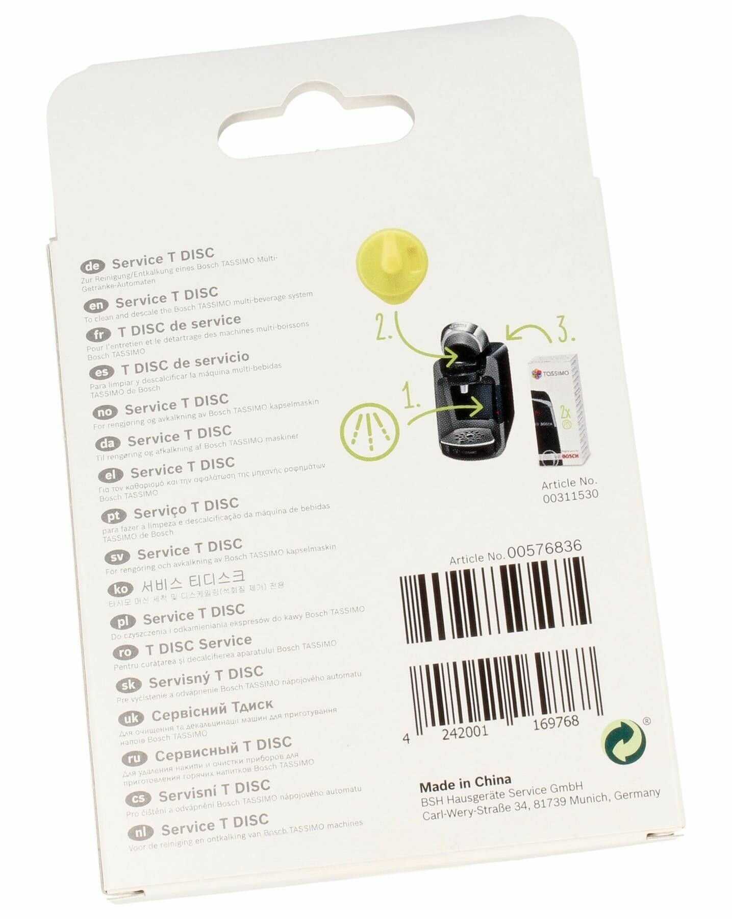 Купить Сервисный диск для чистки капсульной кофемашины Bosch TASSIMO 00576836 желтый T-DISC