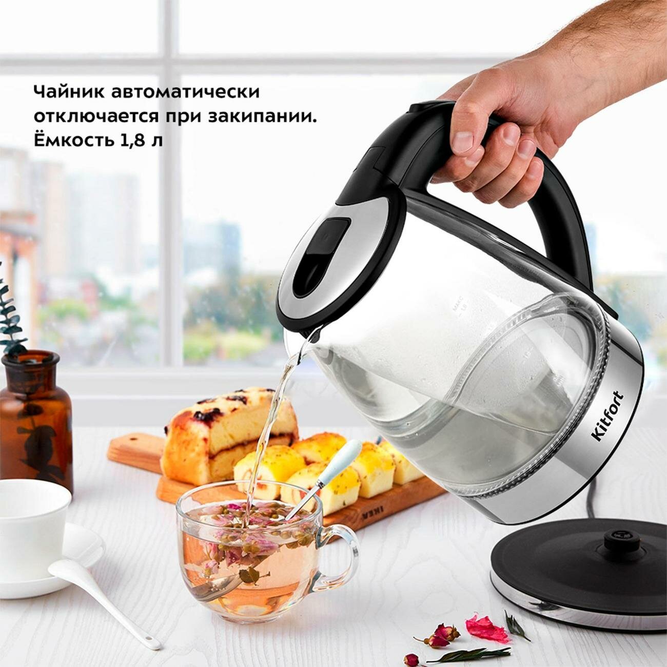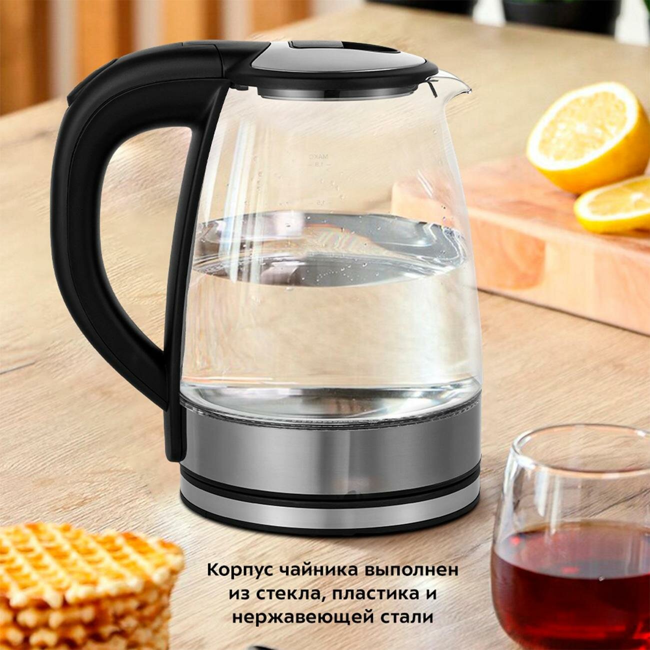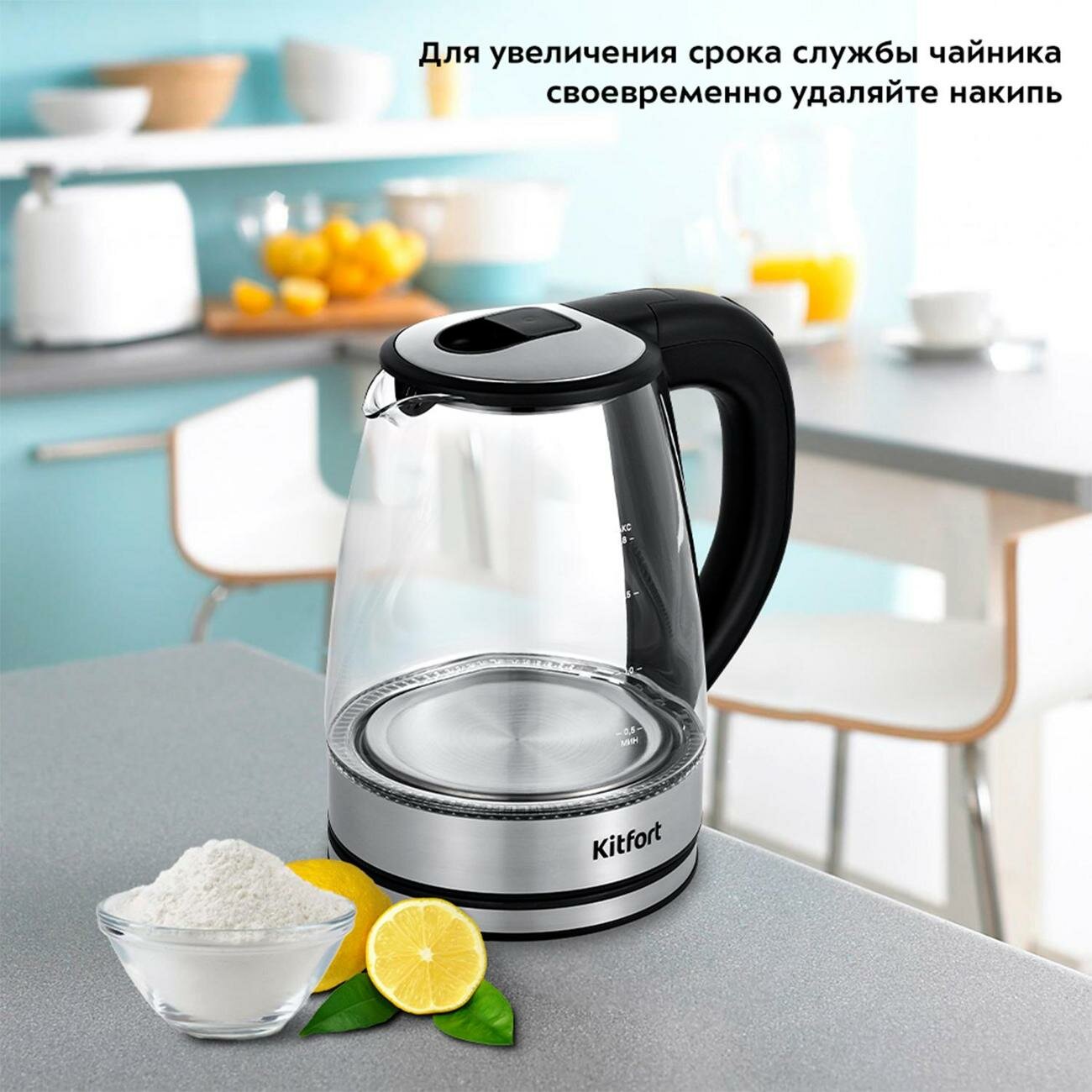Чайник электрический KitFort КТ-6168, 2200Вт, черный глянец и нержавеющая сталь интересное: