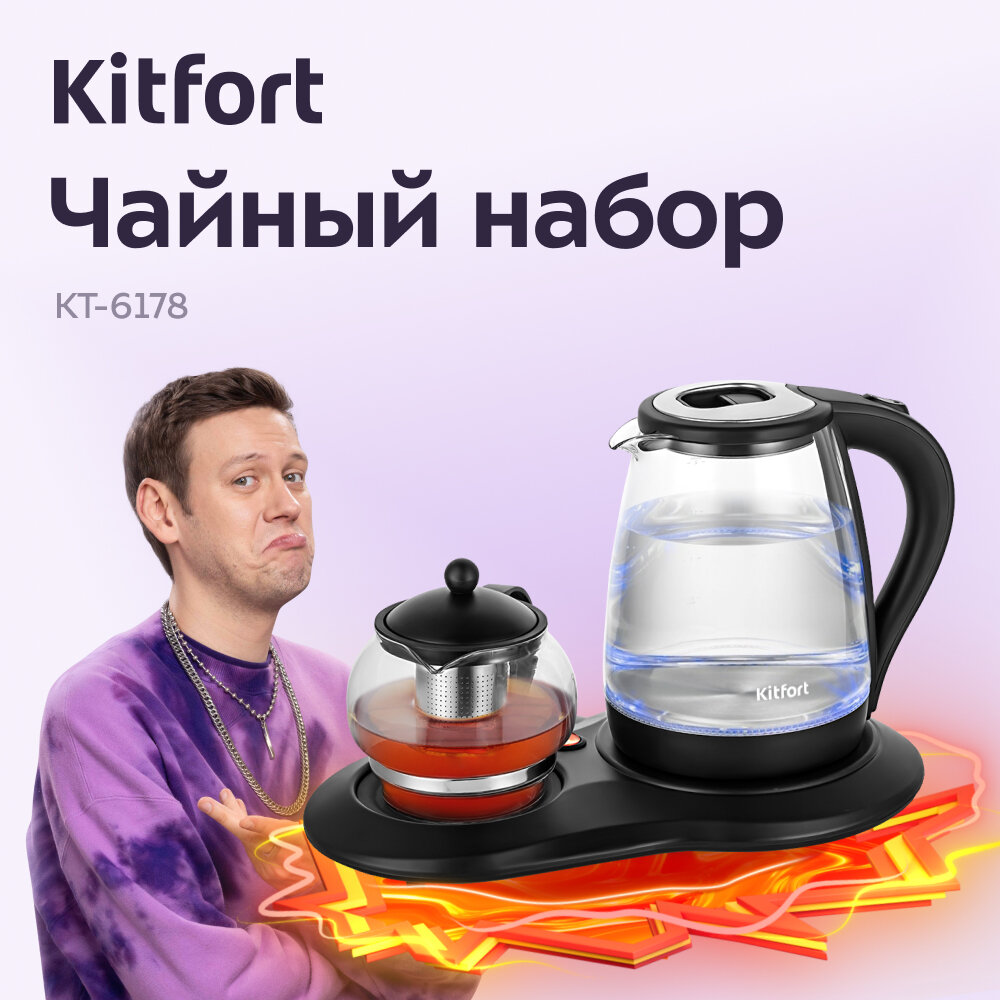 Чайный набор Kitfort КТ-6178 2л. 1500Вт черный корпус: стекло/пластик