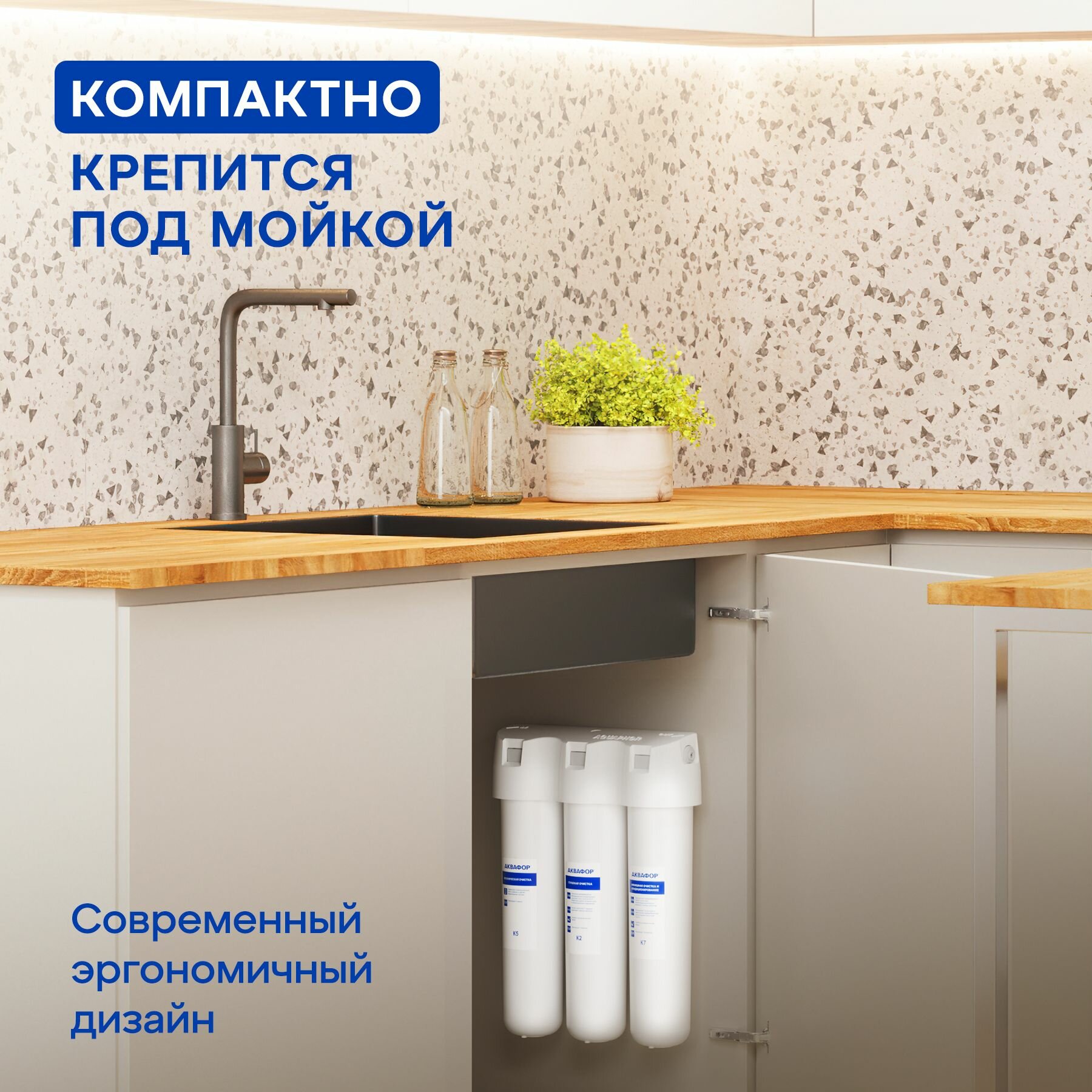 Фильтр под мойку Аквафор Кристалл А для очистки мягкой воды с высоким содержанием механических примесей