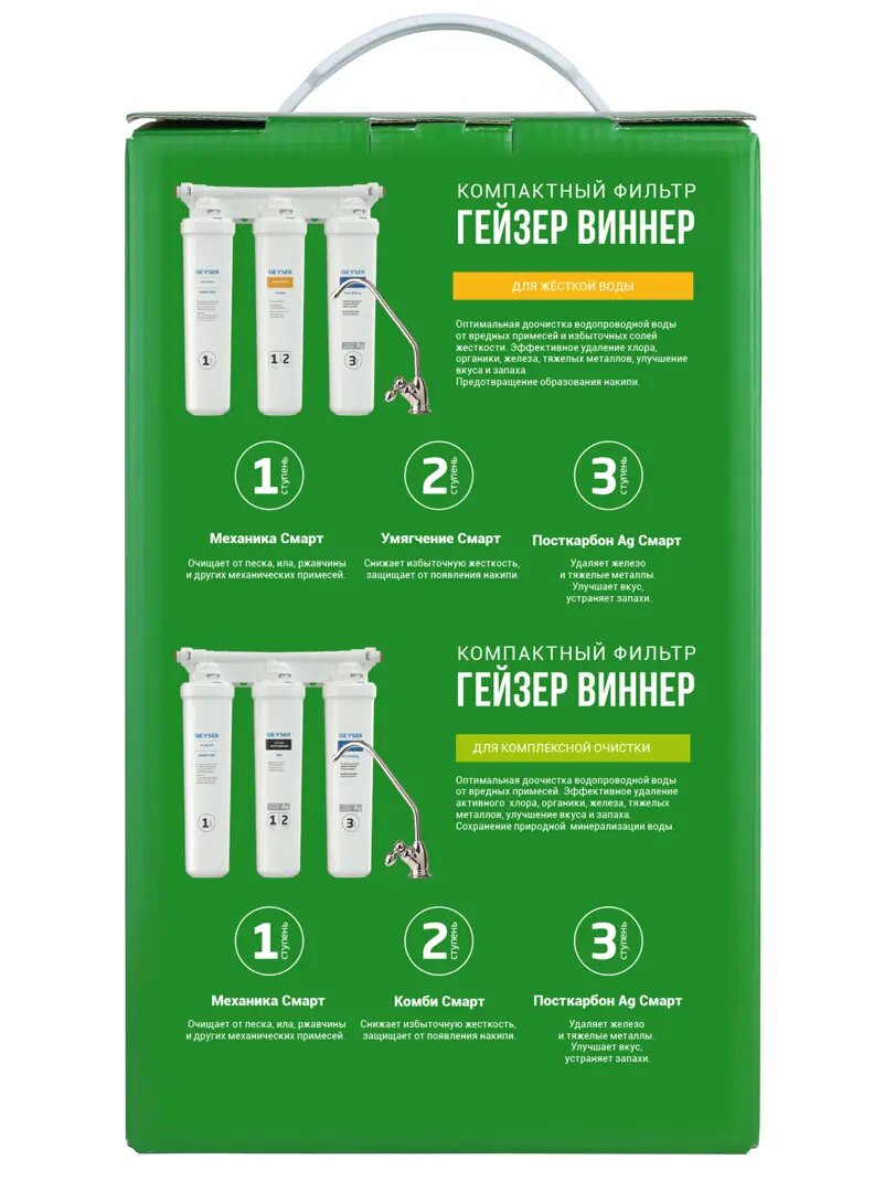 Фильтр под мойку Гейзер Виннер для любого типа воды 3 ступени интересное: