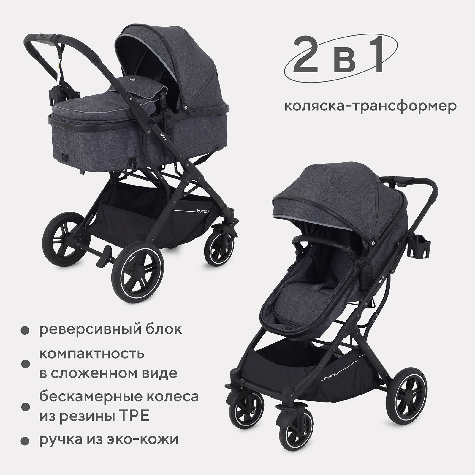 СохранитьRANT Коляска детская трансформер 2 в 1 RANT basic «PULSAR» RA160, цвет серый интересное:
