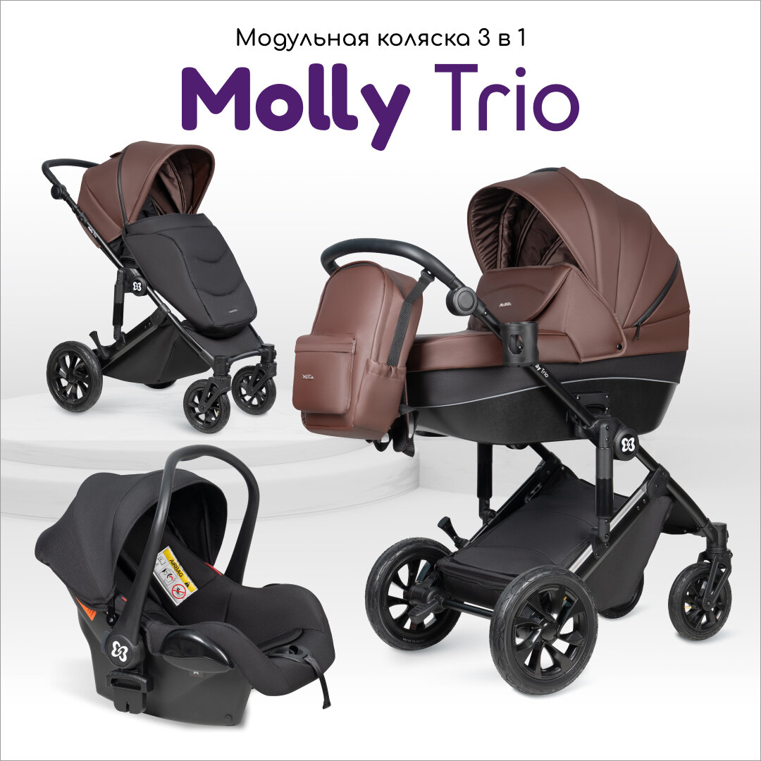 Коляска для новорожденных 3 в 1 Farfello Molly Trio, экокожа шоколадный интересное: