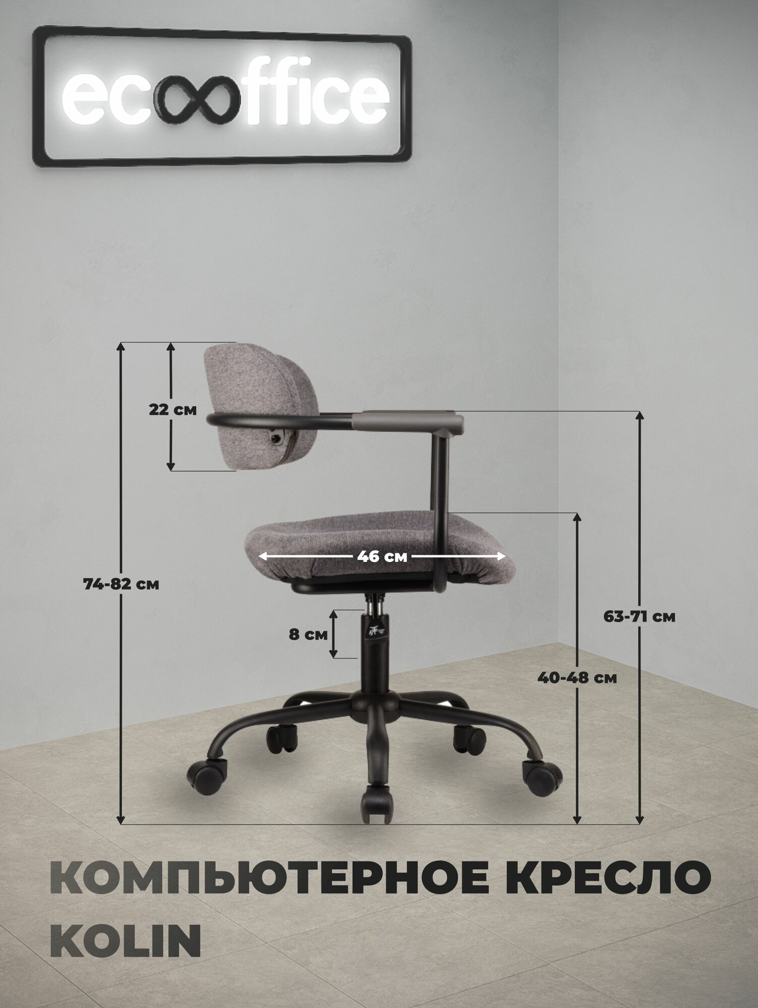 Кресло компьютерное офисное Eco-Office PATRICK W-237, стул крутящийся на колесиках, Светло-серая ткань/Черный каркас