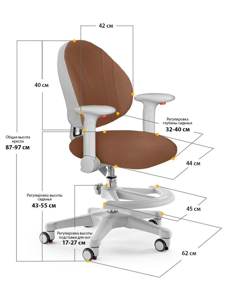 Растущее детское кресло для дома Mio (Y-407) BR + подлокотники в комплекте + подставка для ног