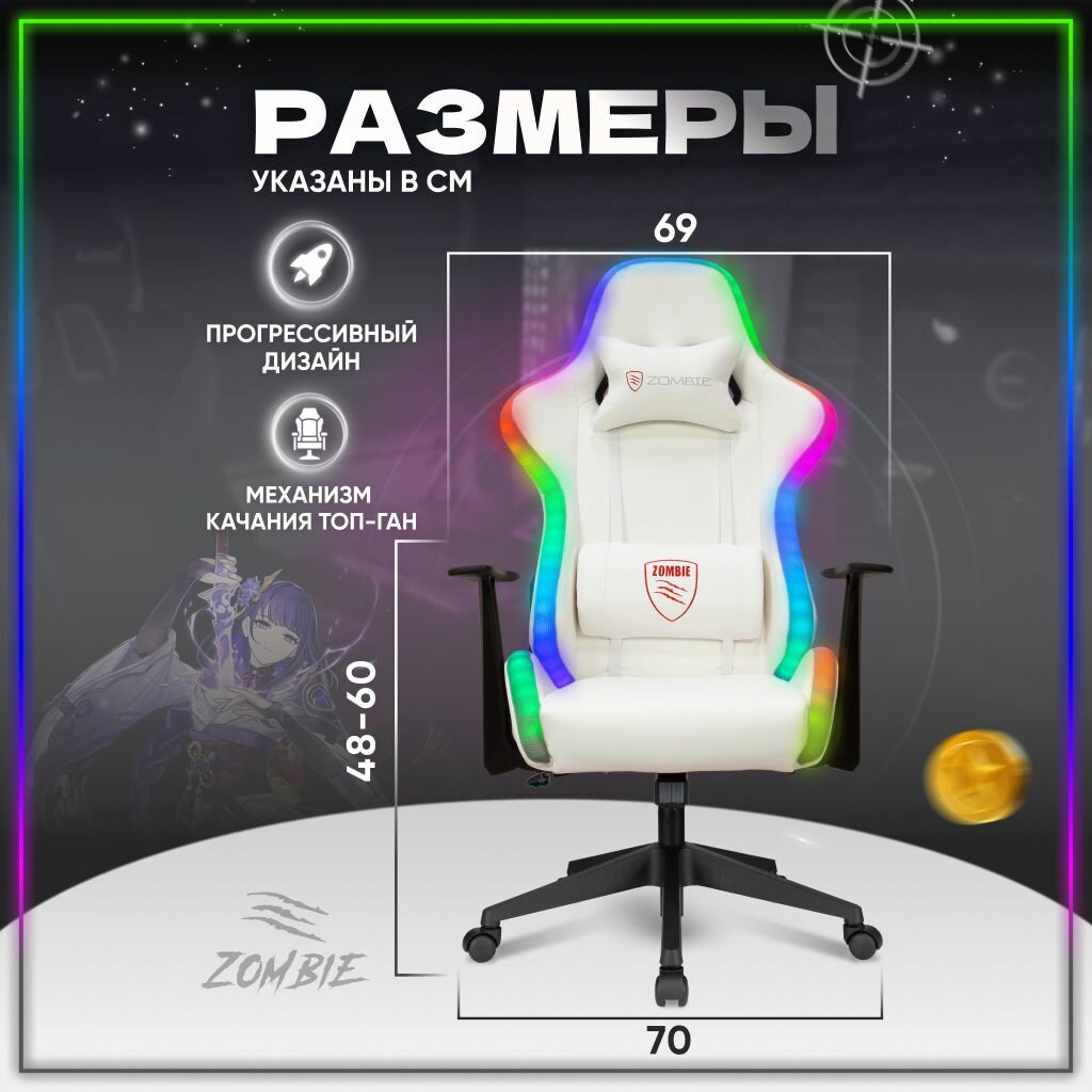 СохранитьКресло компьютерное игровое офисное для геймеров Бюрократ с RGB подсветкой и подголовником, экокожа, текстиль, белое, ZOMBIE GAME RGB интересное: