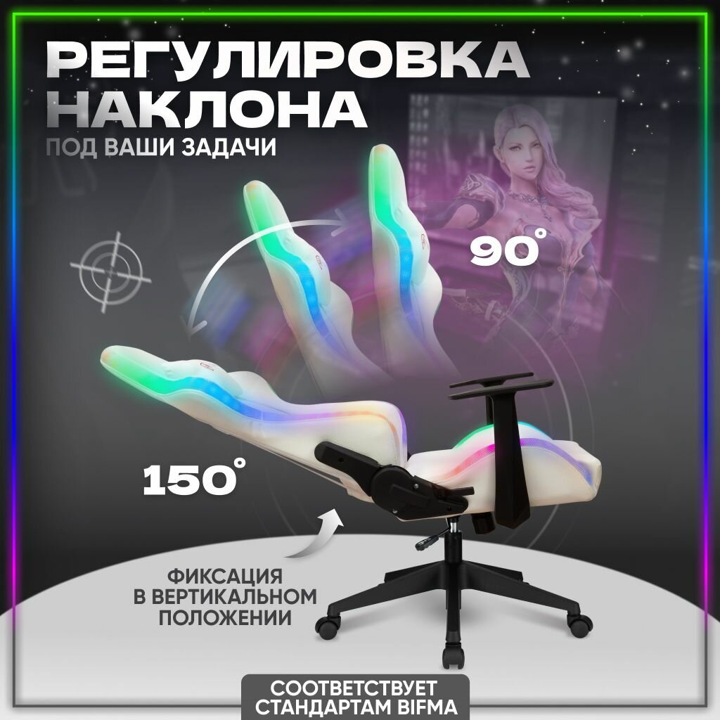 Купить Кресло компьютерное игровое офисное для геймеров Бюрократ с RGB подсветкой и подголовником, экокожа, текстиль, белое, ZOMBIE GAME RGB