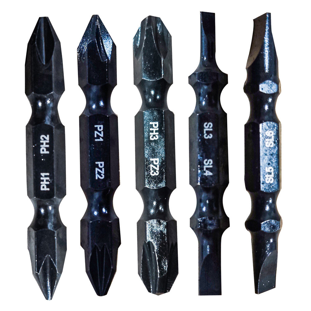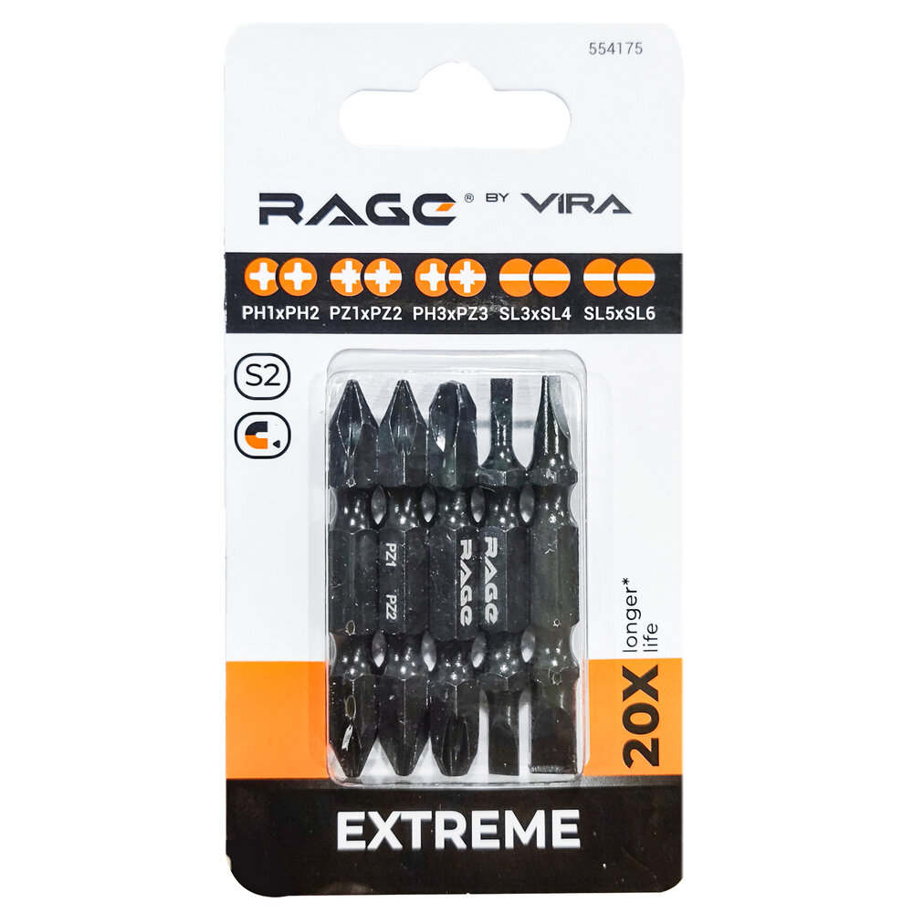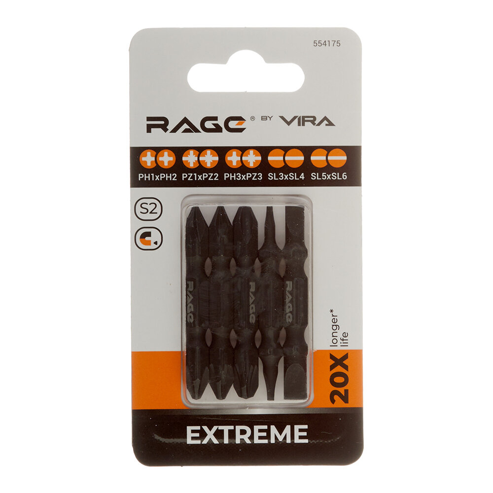 Набор бит двухсторонних 5 шт S2 PH1 x PH2 PZ1 x PZ2 PH3 x PZ3 Sl3 x Sl4 Sl5 x Sl6 50 мм RAGE by VIRA