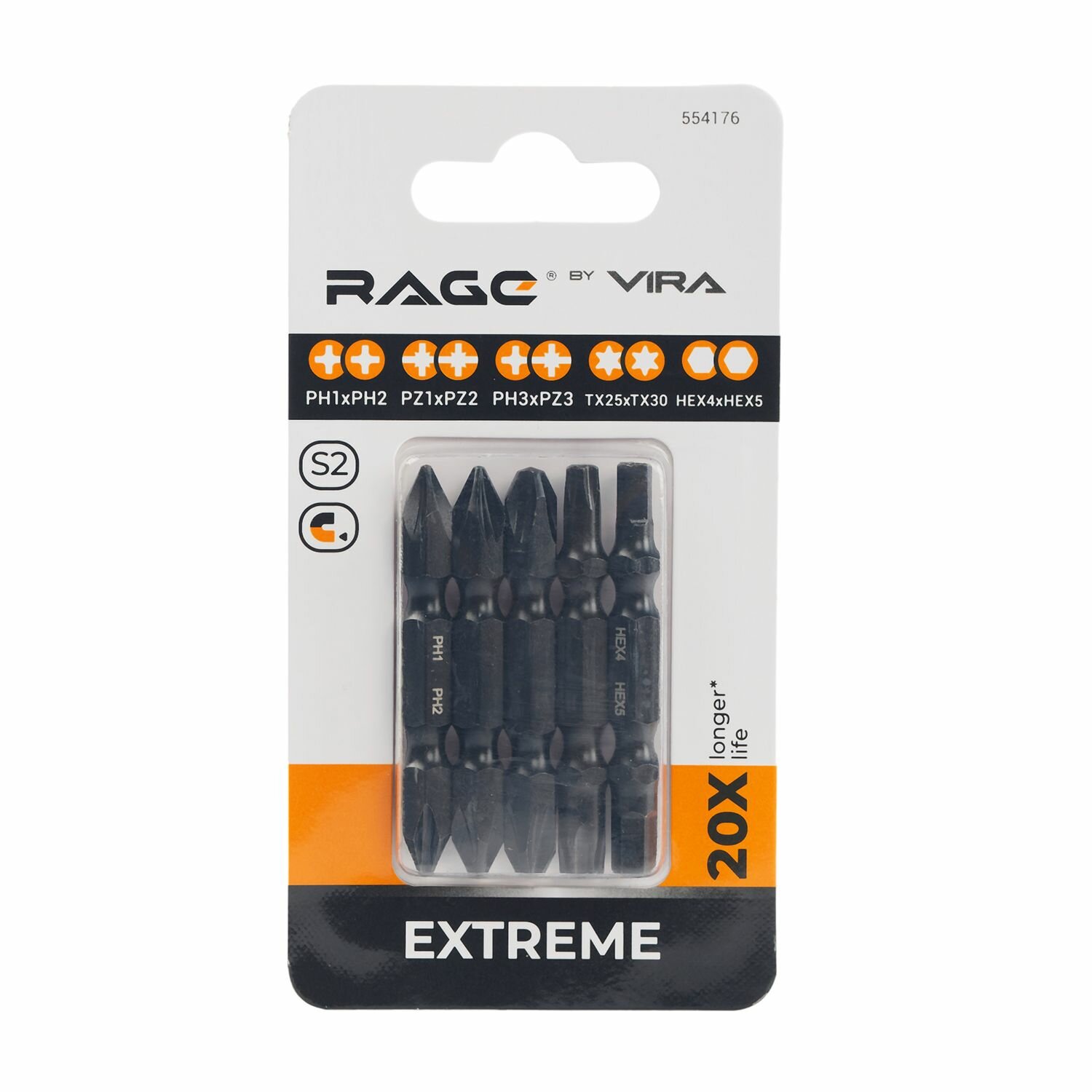 RAGE by VIRA Набор бит двухсторонних s2 ph1xph2, pz1xpz2, ph3хpz3, tx25xtx30, hex4xhex5x50 мм 5 шт 554176