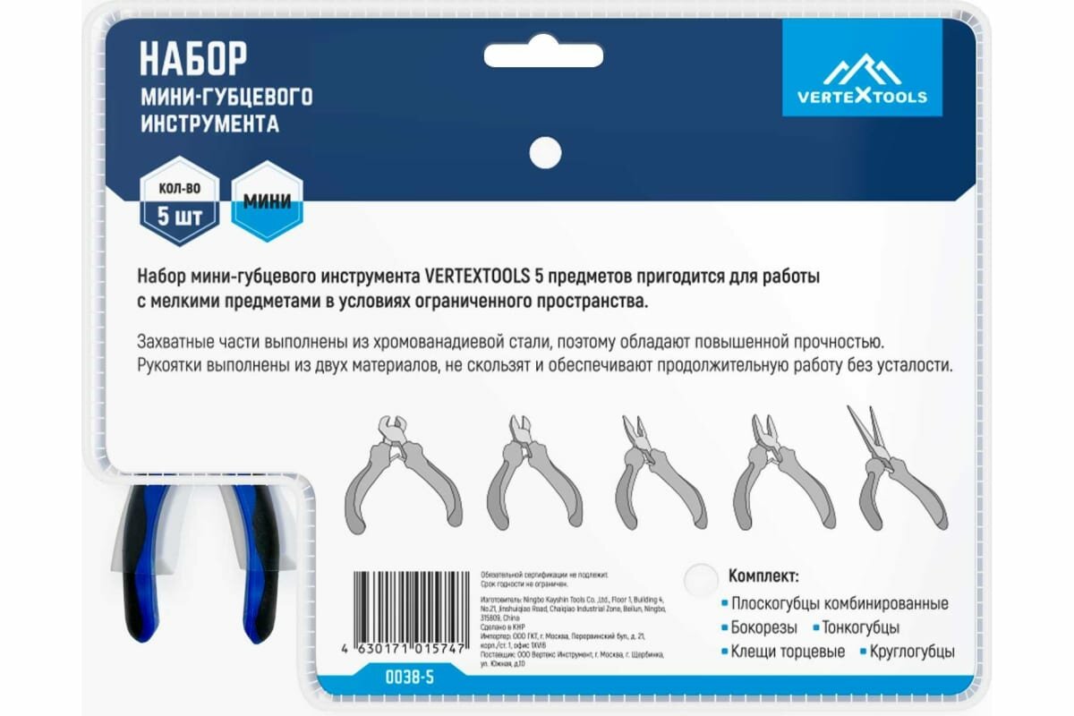 Набор мини-губцевого инструмента vertextools 5 предметов 0038-5 интересное:
