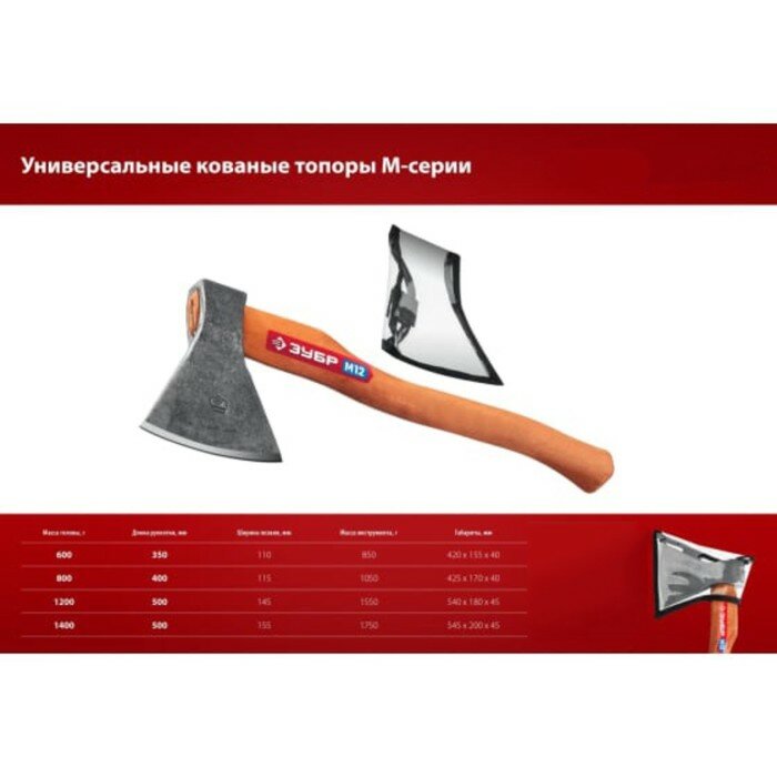 Универсальный кованый топор ЗУБР М8, 800/1050 г, 400 мм