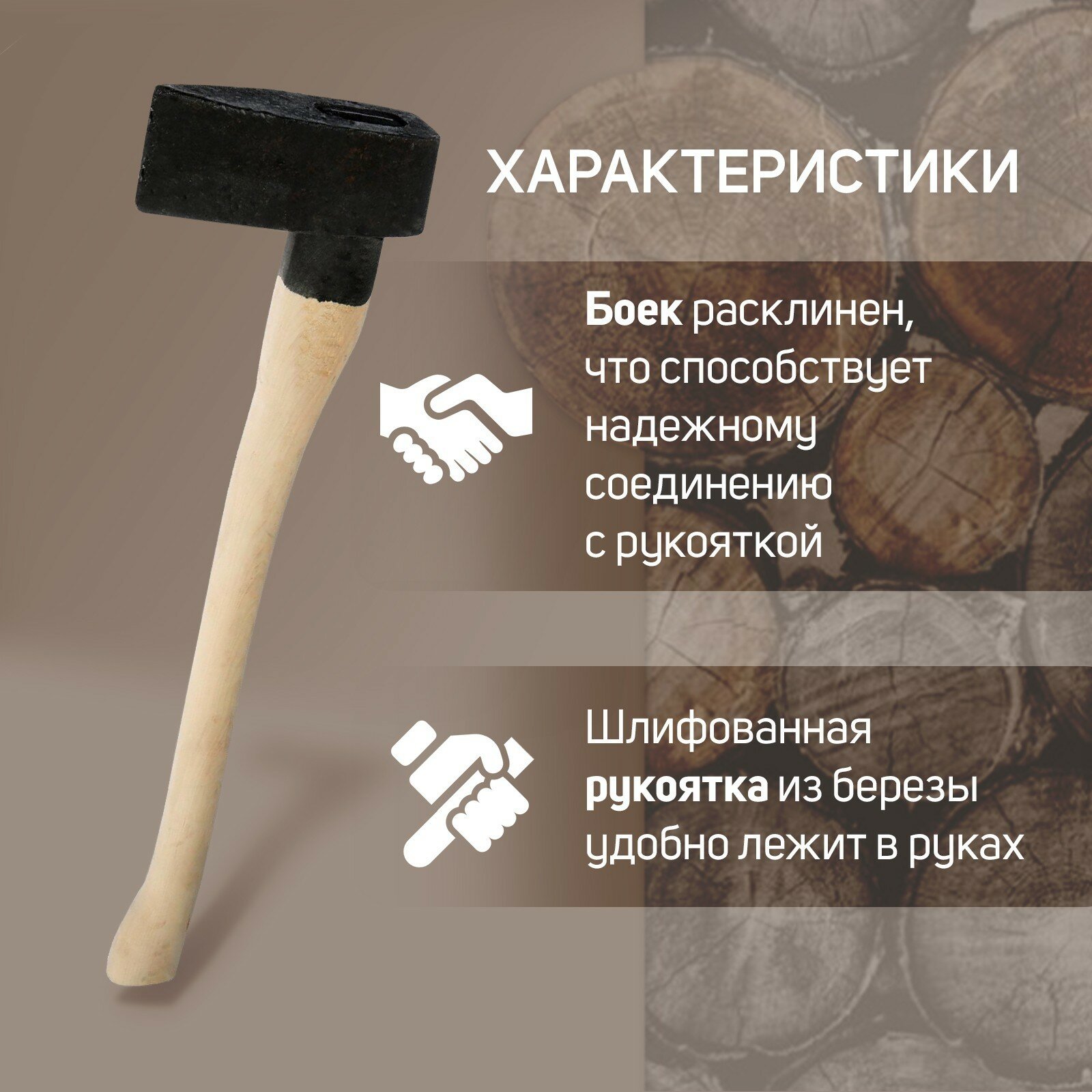 Колун литой, 3 кг, деревянное топорище интересное: