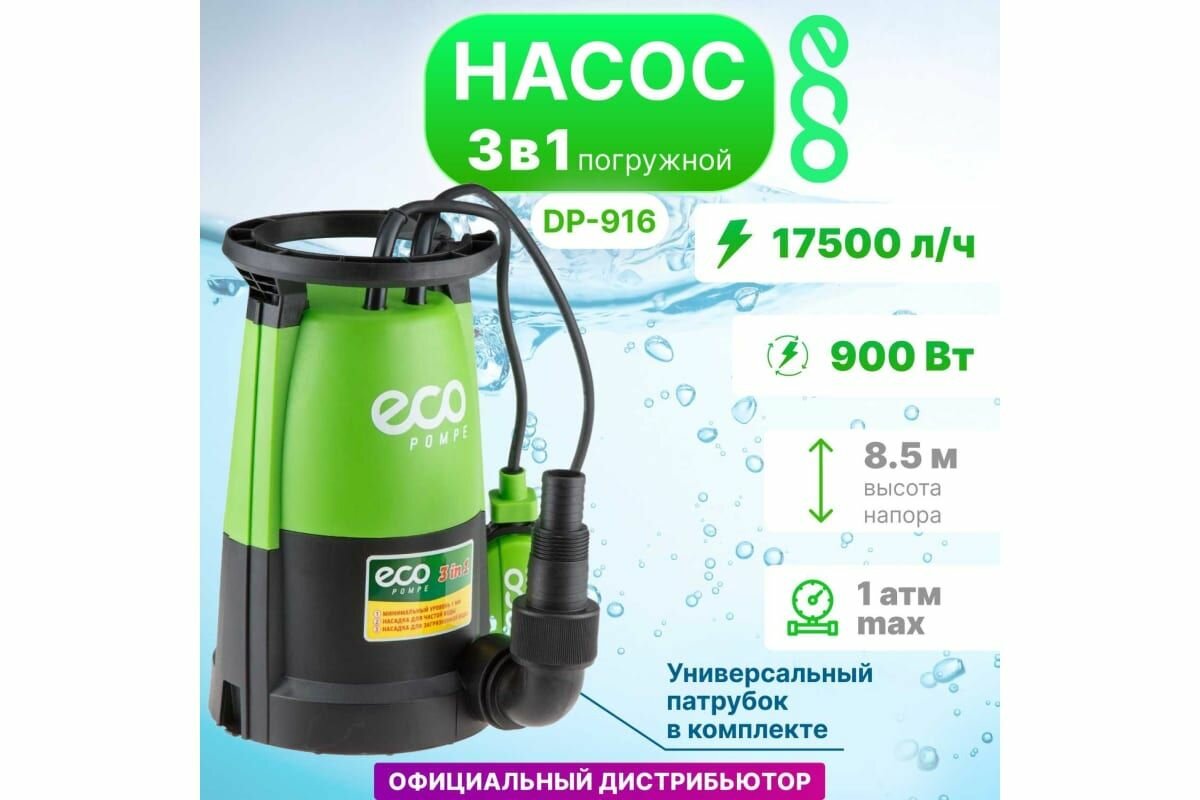 Насос погружной для загрязненной воды нержавеющий Eco DI-903, 900 Вт, 14500 л/ч, 9 м