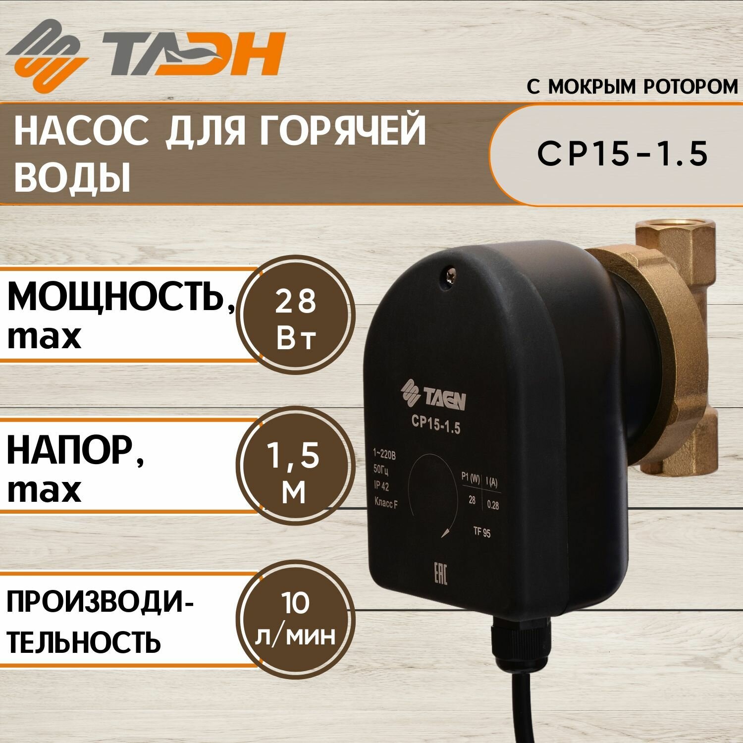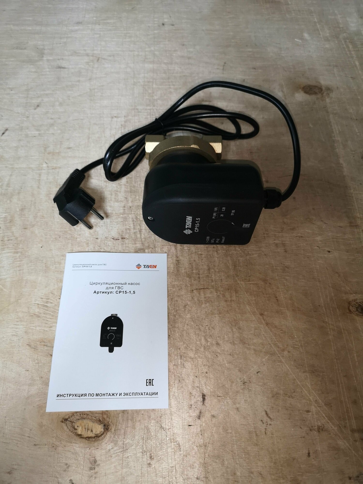 TAEN CP15-1.5, Насос циркуляционный для ГВС (Ду 15, 220В, кабель 1,5м с евровилкой)