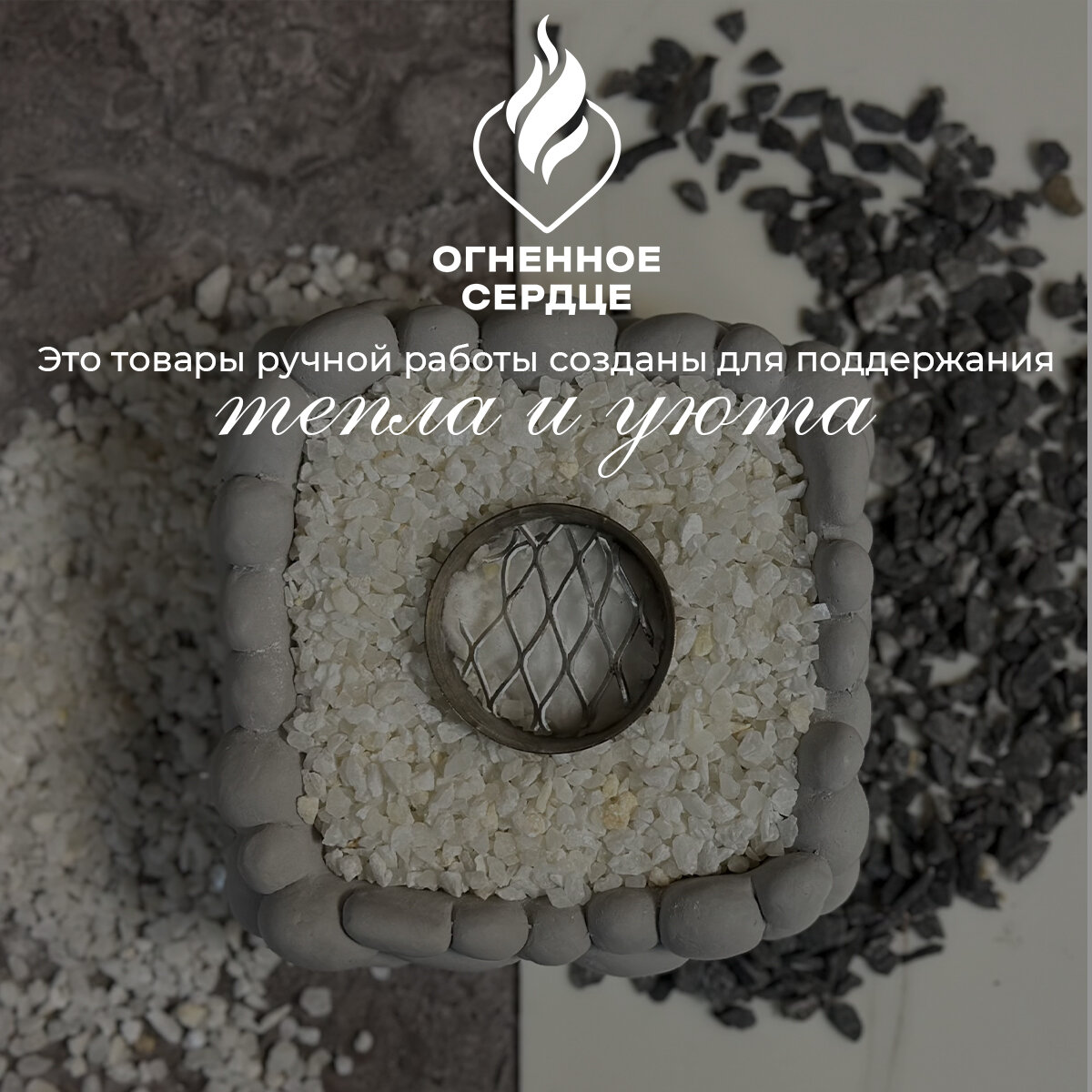Биокамин "Сердце большое", напольная и настольная установка, белый гипс