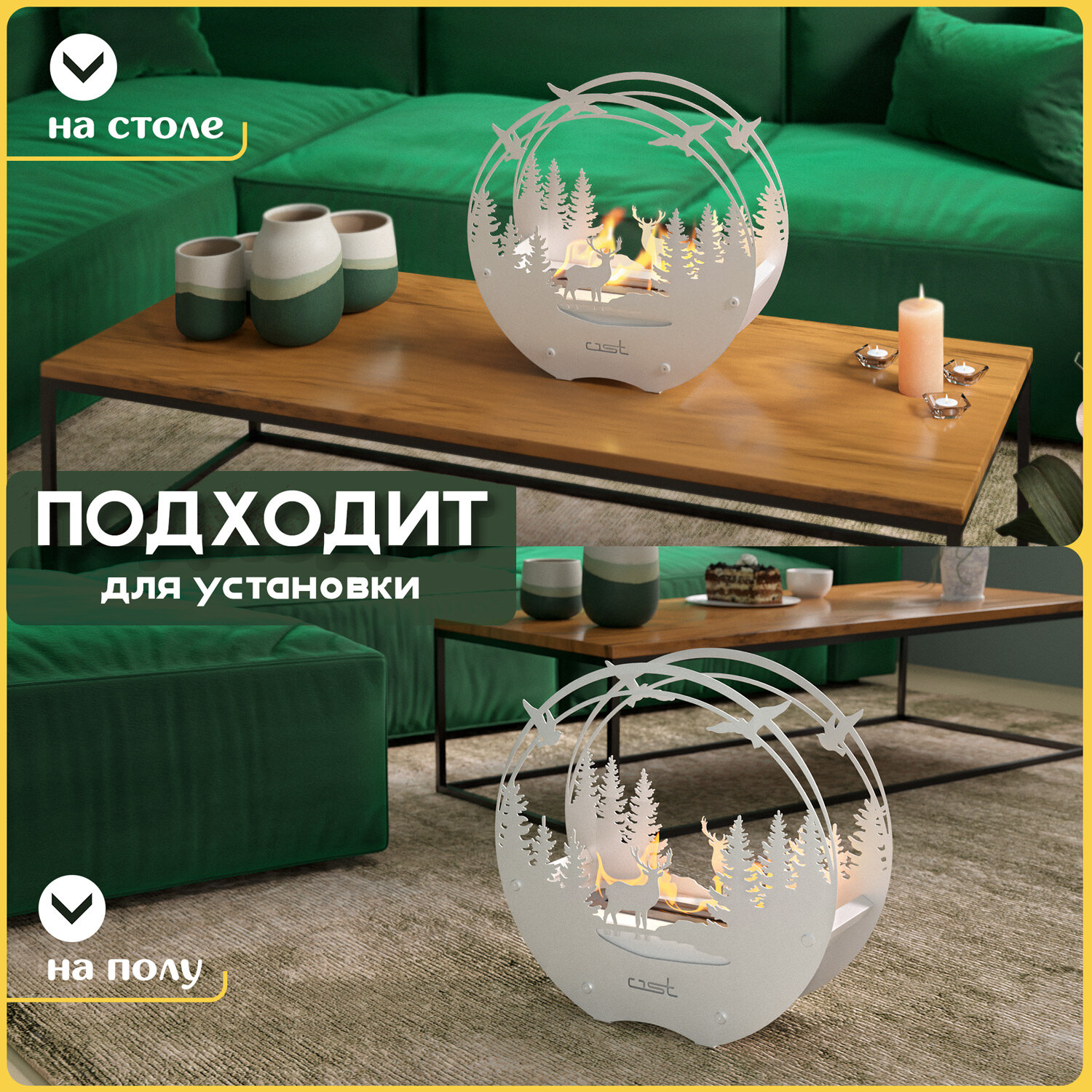 Биокамин металлический Forest spirit 46*45*16 см, белый камин для дома декоративный