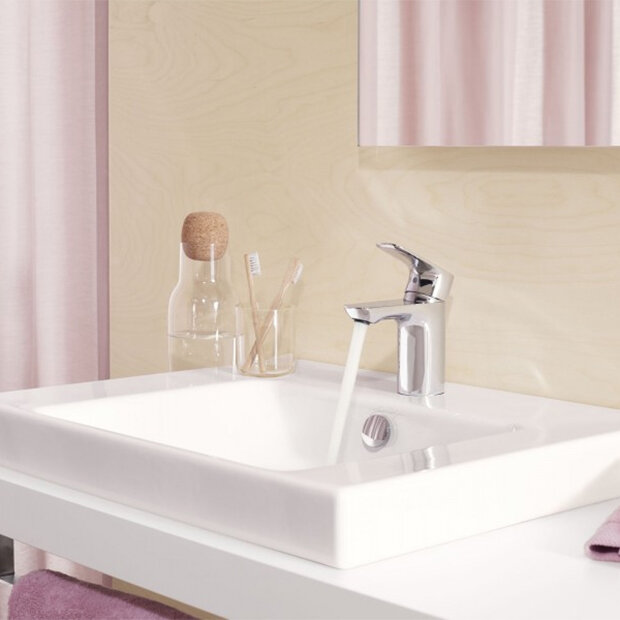 Смеситель для умывальника Jacob Delafon Aleo, арт. E72275-4-CP, неповоротный излив, с донным клапаном, 5 л/мин
