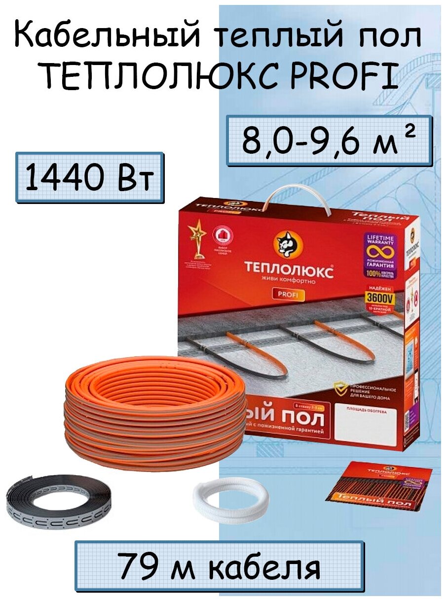 СохранитьТеплый пол. Кабель для обогрева пола "Теплолюкс" ProfiRoll 9,6 кв.м. 79,0 м/1440 Вт интересное: