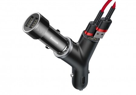 Автомобильное зарядное устройство/ зарядка в прикуриватель/ прикуриватель usb с разветвителем 2xUSB Baseus Y type - Черное (CCALL-YX01)